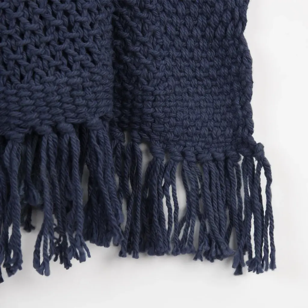 This 50-inch x 50-inch indigo woven cotton throw blanket is an essential for any cozy abode. Features a woven solid color design that offers sumptuous softness and texture that you'll cherish for years to come. Made from cotton this blanket will make a great addition to any room it's added to. Add extra texture to your decor and turn your room into an inviting space. This cozy throw blanket makes the perfect add-on to movie nights and lazy afternoons. 50-inch H x 50-inch W x 0.5-inch D