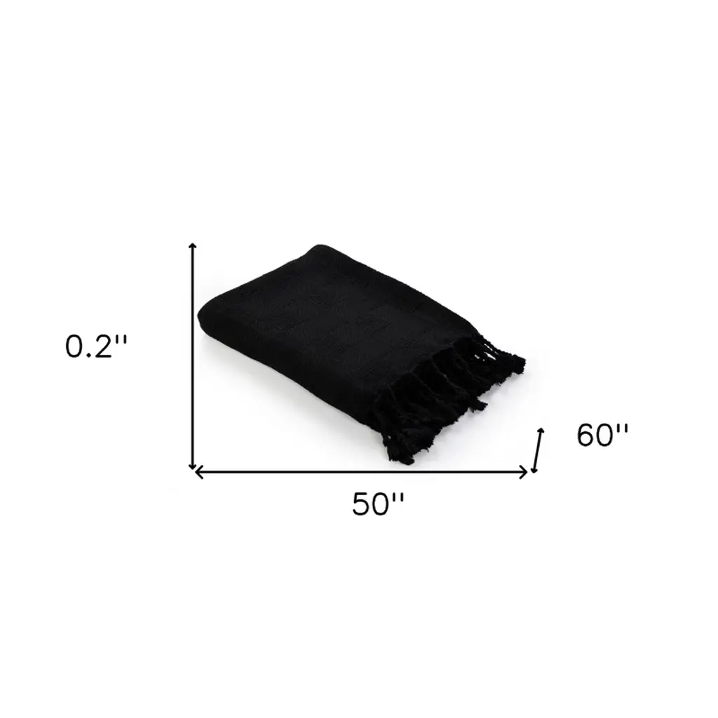 Homeroots 50" X 60" Black Woven Cotton Throw Blanket With Fringe