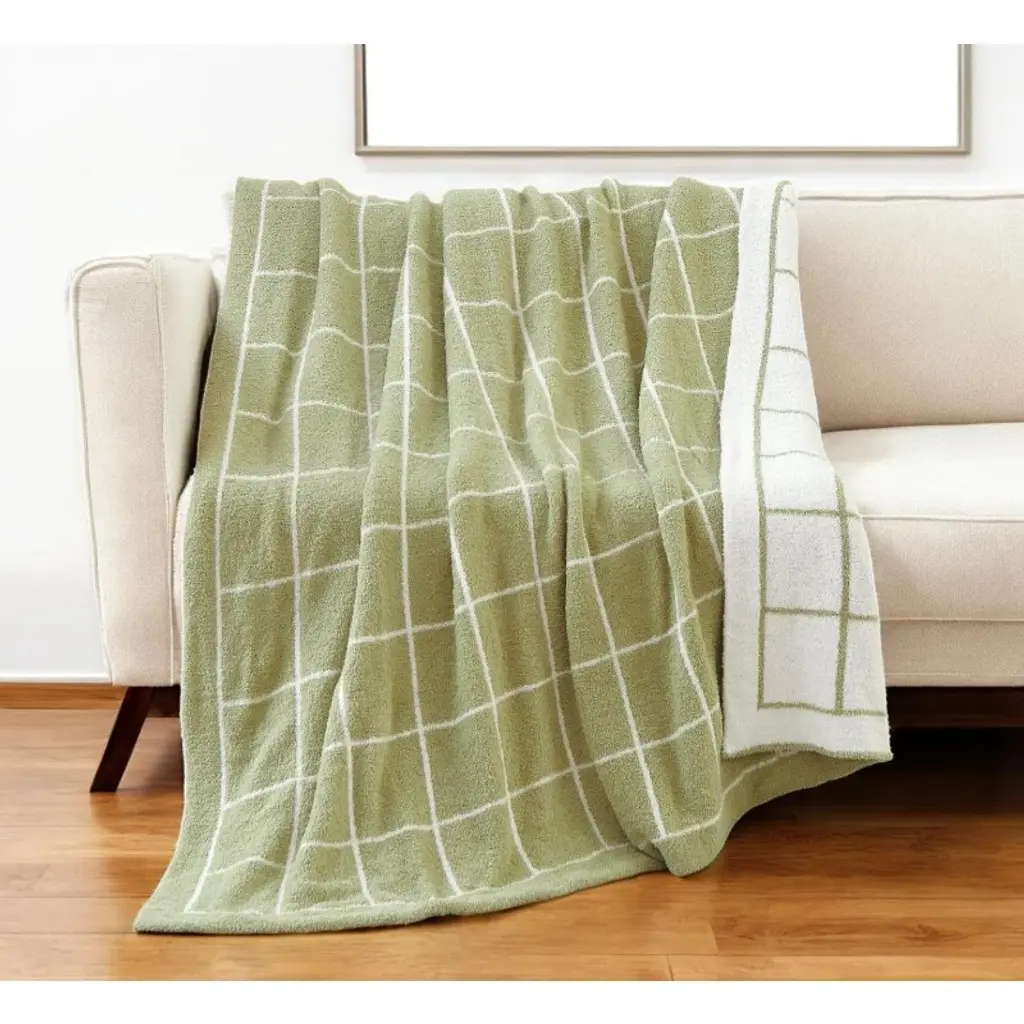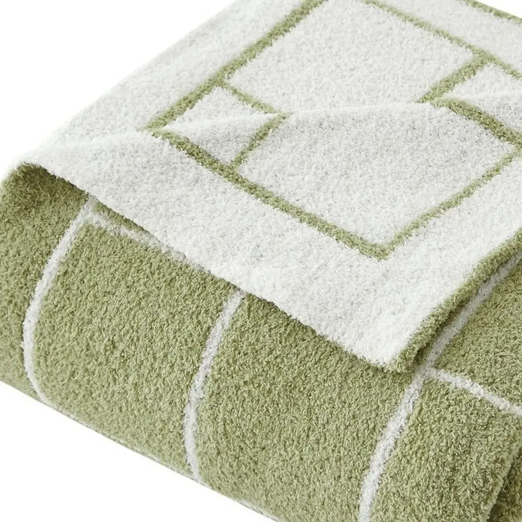 This 50-inch x 60-inch green and white fleece knitted geometric plush throw blanket is a stylish addition to any sofa. This plush throw is cozy soft beyond belief and oh-so-giftable. This super soft textural knitted blanket in a geometric pattern looks fabulous and is perfect for staying warm cozy in the winter months. Made from fleece this blanket will make a great addition to any room it's added to. Layering your furnishings with a decorative throw has the ability to awaken a tired living room or elevate the design of your bedroom simply by providing elements of color and texture that weren't there before. This cozy throw blanket is sure to become your go-to couch companion. 60-inch h x 50-inch w x 2-inch d