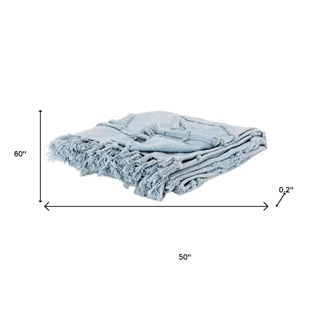 Homeroots 50" X 60" Light Blue Cotton Woven Throw Blanket With Tassels And Fringe