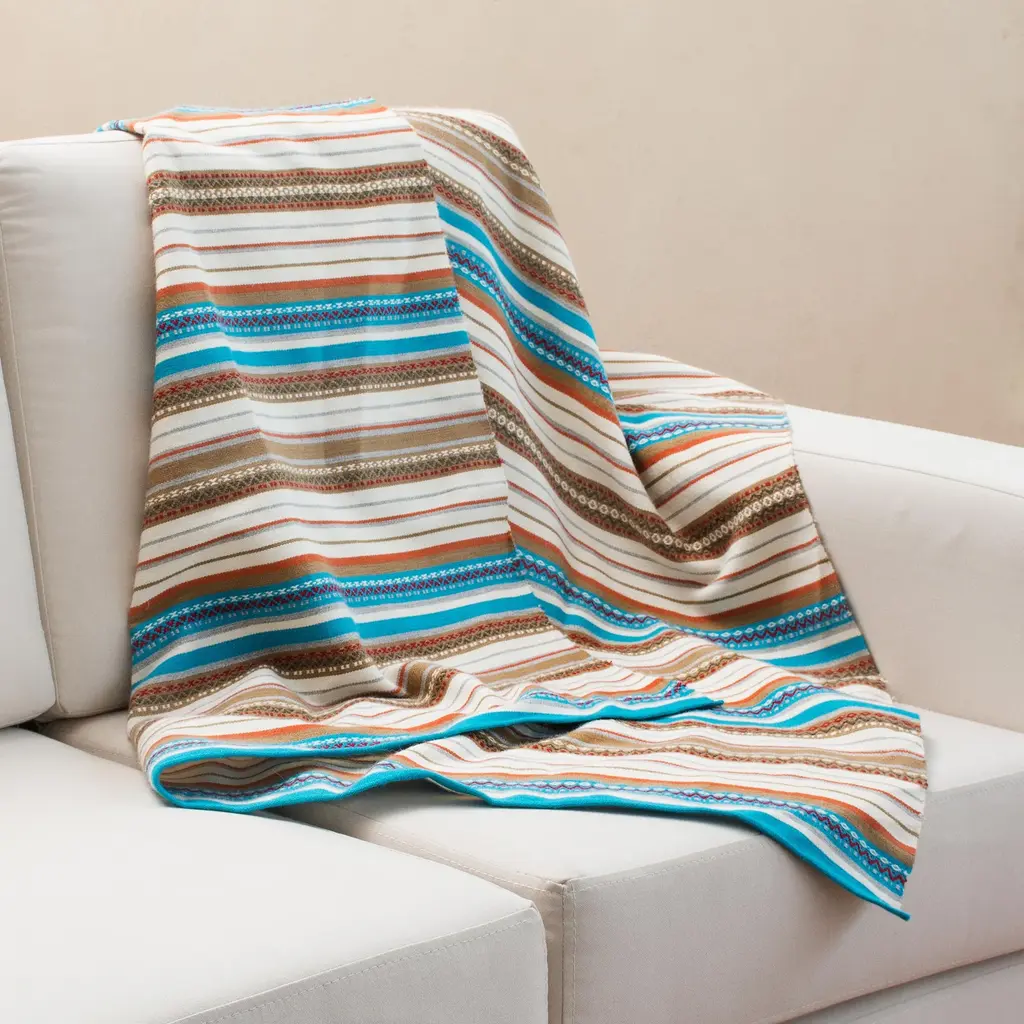 This 50-inch x 70-inch brown and blue ikat cotton quilted kantha throw blanket with embroidery brings a classic, refined style to your space. Handmade by true artisans, this good looking throw will elevate its surroundings with its genuine and artisanal style. Featuring beautiful embroidery, this embellished throw is of the highest quality and design. Made from cotton this blanket will make a great addition to any room it's added to. 70-inch h x 50-inch w x 0.1-inch d.