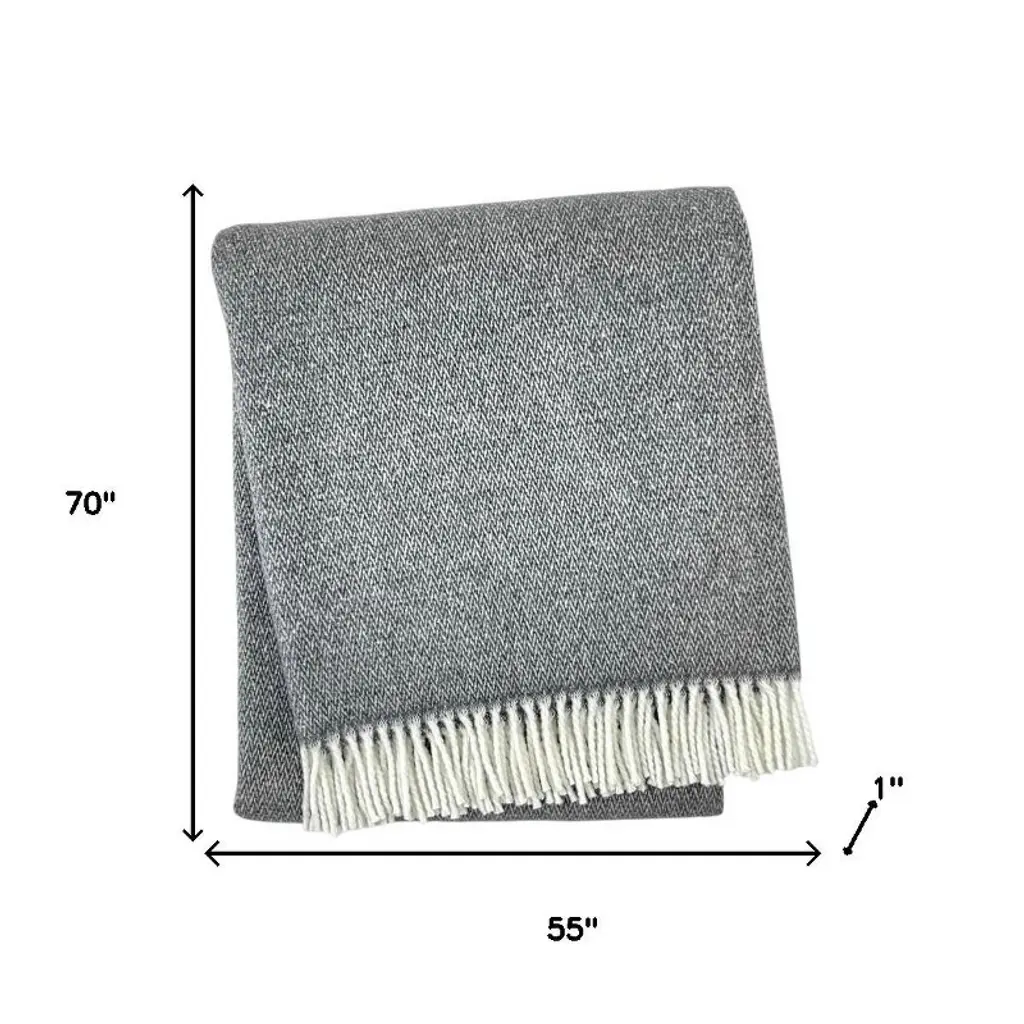 Homeroots 55" X 70" Dark Gray And White Cotton Blend Woven Herringbone Plush Throw Blanket With Fringe