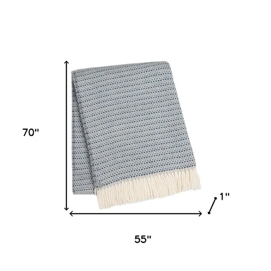 Homeroots 55" X 70" Denim Blue Cotton Blend Woven Plush Throw Blanket With Fringe