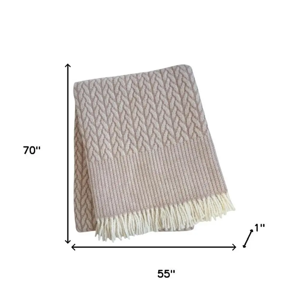 Homeroots 55" X 70" Dusty Rose Cotton Blend Woven Plush Throw Blanket With Fringe