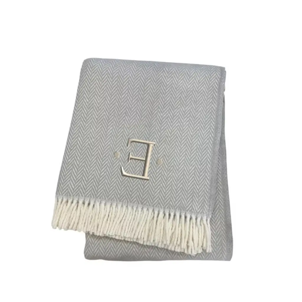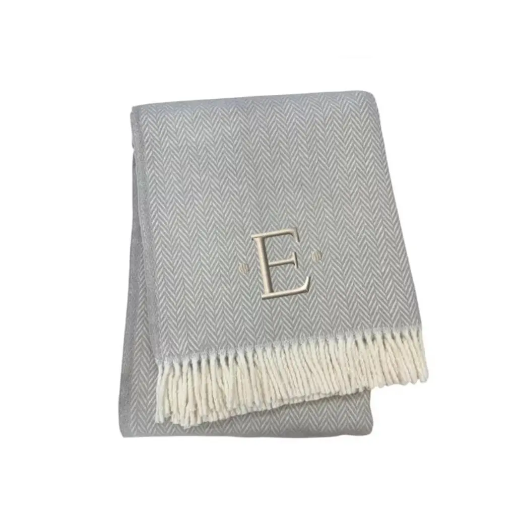 Whether you're curling up for movie night or you need an extra layer of warmth as you drift off to sleep, this 55-inch x 70-inch gray and white herringbone cotton blend e initial throw blanket with tassels and embroidery is the perfect solution. Features a woven herringbone design that offers sumptuous softness and texture that you'll cherish for years to come. Made from cotton blend this blanket will make a great addition to any room it's added to. Add extra texture to your decor and turn your room into an inviting space. Perfect for your favorite chair, bed or lounging on the couch, this blanket helps bring a warm and fashionable flair to your space. 70.00-inch h x 55.00-inch w x 0.50-inch d.