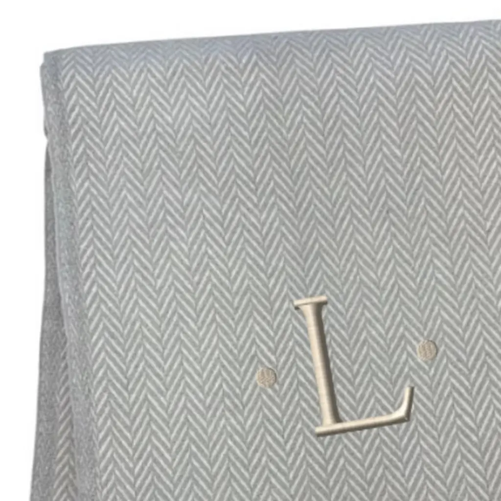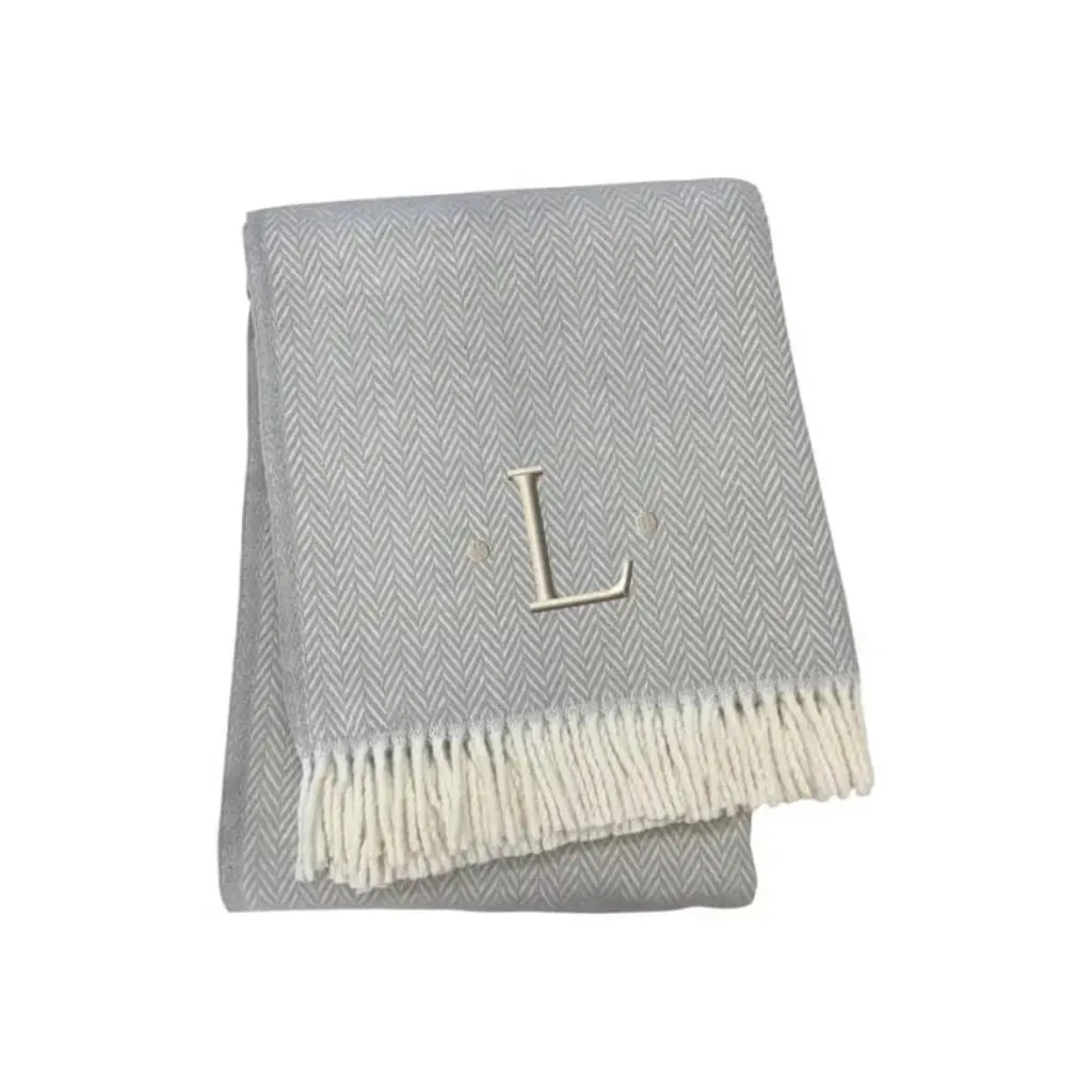 This 55-inch x 70-inch gray and white herringbone cotton blend l initial throw blanket with tassels and embroidery is an essential for any cozy abode. Features a woven herringbone design that offers sumptuous softness and texture that you'll cherish for years to come. Made from cotton blend this blanket will make a great addition to any room it's added to. Add extra texture to your decor and turn your room into an inviting space. This cozy throw blanket makes the perfect add-on to movie nights and lazy afternoons. 70.00-inch h x 55.00-inch w x 0.50-inch d.