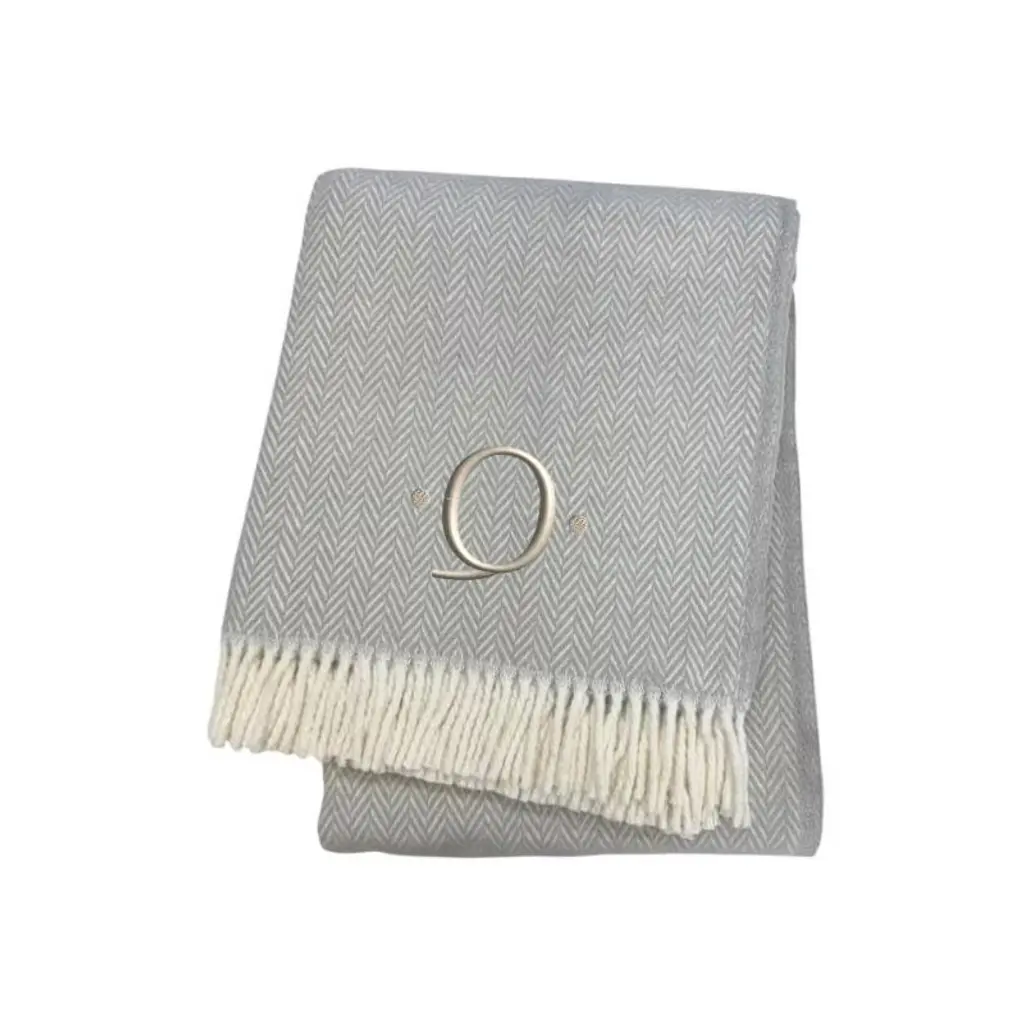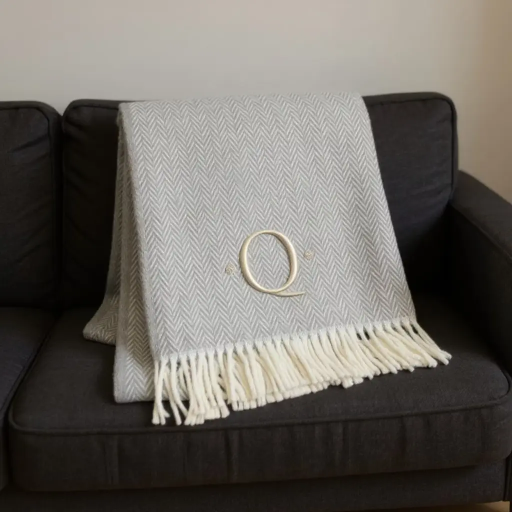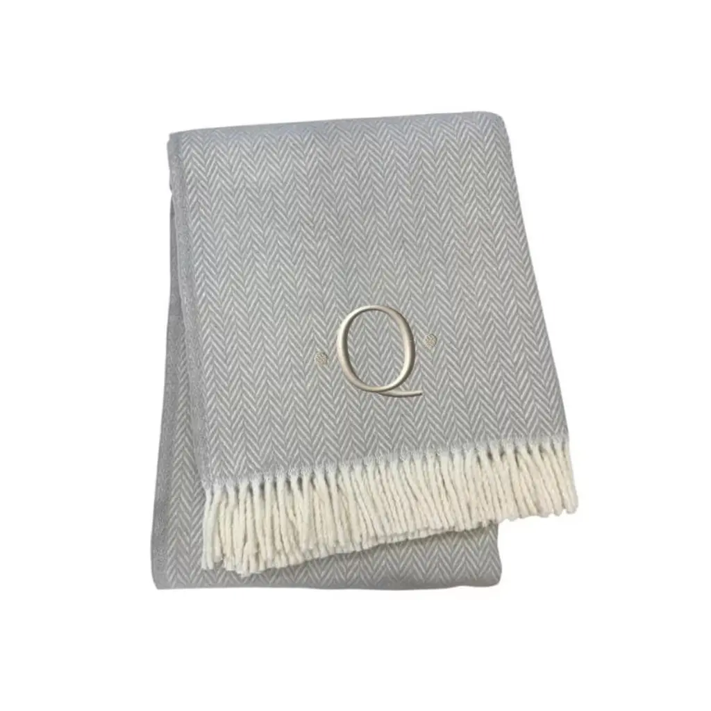 This 55-inch x 70-inch gray and white herringbone cotton blend q initial throw blanket with tassels and embroidery is a stylish addition to any sofa. Features a woven herringbone design that offers sumptuous softness and texture that you'll cherish for years to come. Made from cotton blend this blanket will make a great addition to any room it's added to. Layering your furnishings with a decorative throw has the ability to awaken a tired living room or elevate the design of your bedroom simply by providing elements of color and texture that weren't there before. Perfect for your favorite chair, bed or lounging on the couch, this blanket helps bring a warm and fashionable flair to your space. 70.00-inch h x 55.00-inch w x 0.50-inch d.