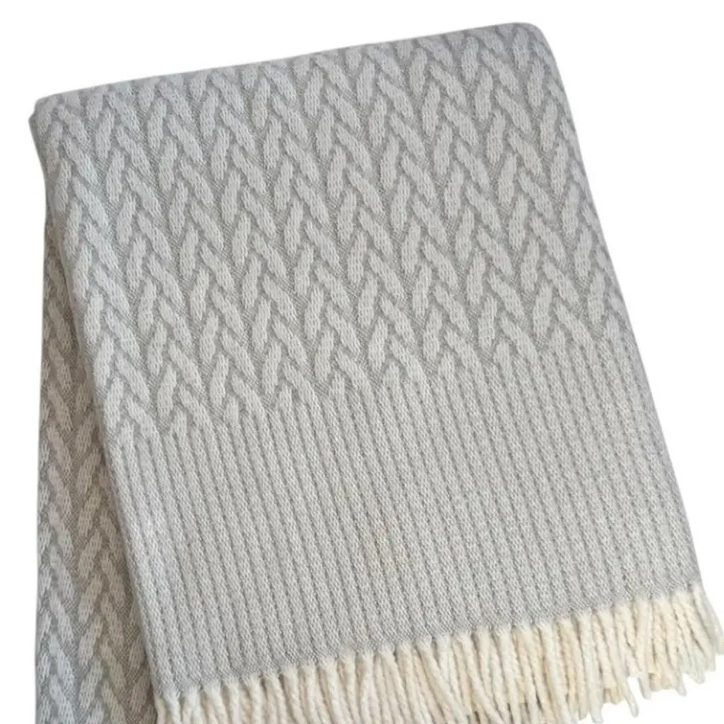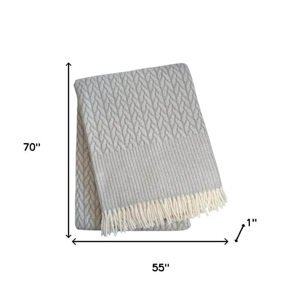 Homeroots 55" X 70" Gray Cotton Blend Woven Plush Throw Blanket With Fringe