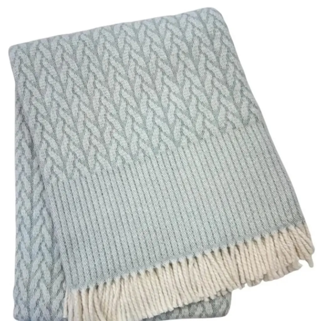 Homeroots 55" X 70" Sky Blue Cotton Blend Woven Plush Throw Blanket With Fringe