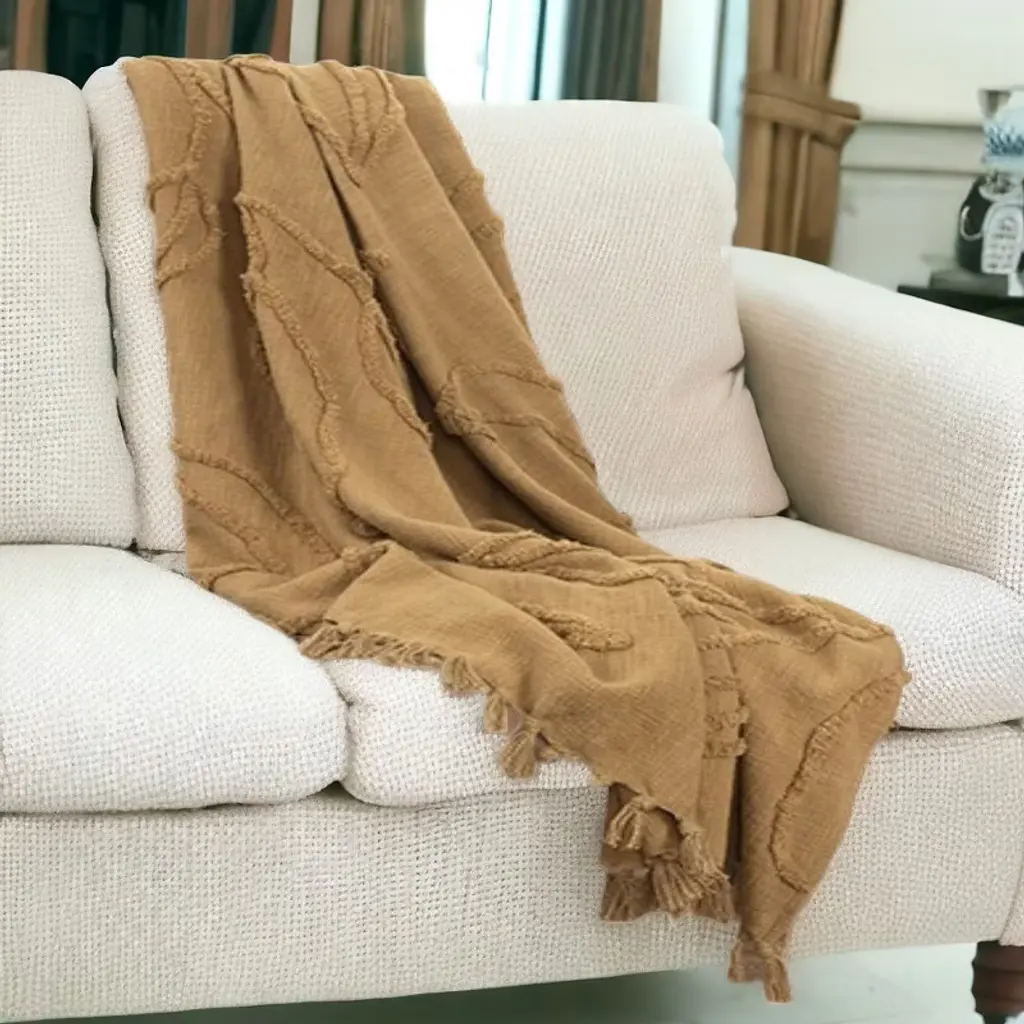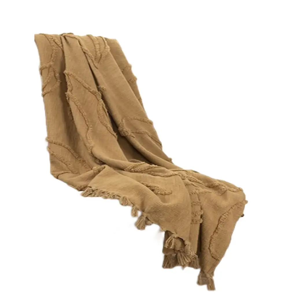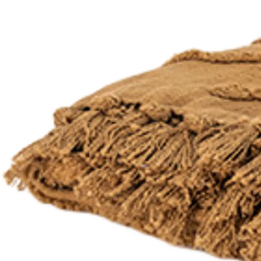 Homeroots Camel Woven 100% Woven Textured Cotton Throw Blanket