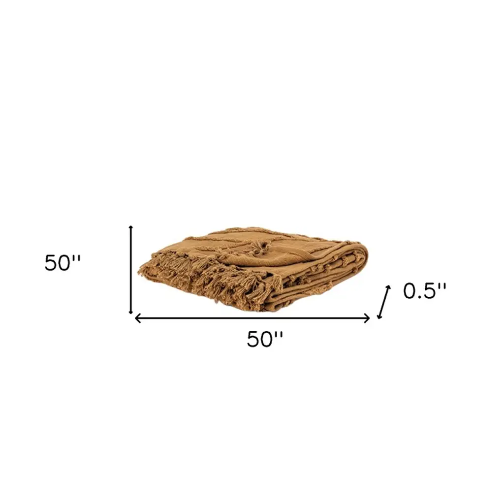 Bring warmth, comfort and style to your space with this camel woven 100% woven textured cotton throw blanket. Features a woven floral design that offers sumptuous softness and texture that you'll cherish for years to come. Made from 100% woven textured cotton this blanket will make a great addition to any room it's added to. Layering your furnishings with a decorative throw has the ability to awaken a tired living room or elevate the design of your bedroom simply by providing elements of color and texture that weren't there before. This cozy throw blanket is sure to become your go-to couch companion. 50-inch H x 50-inch W x 0.5-inch D
