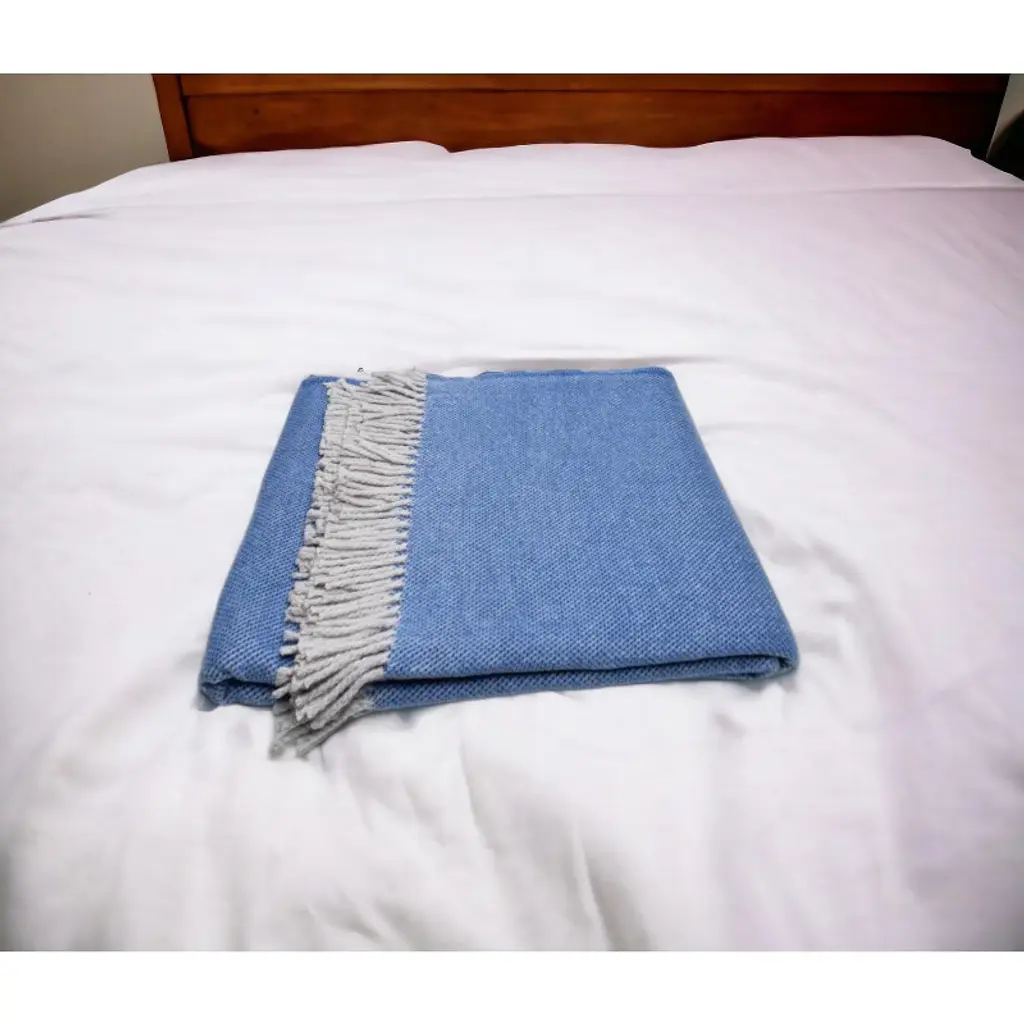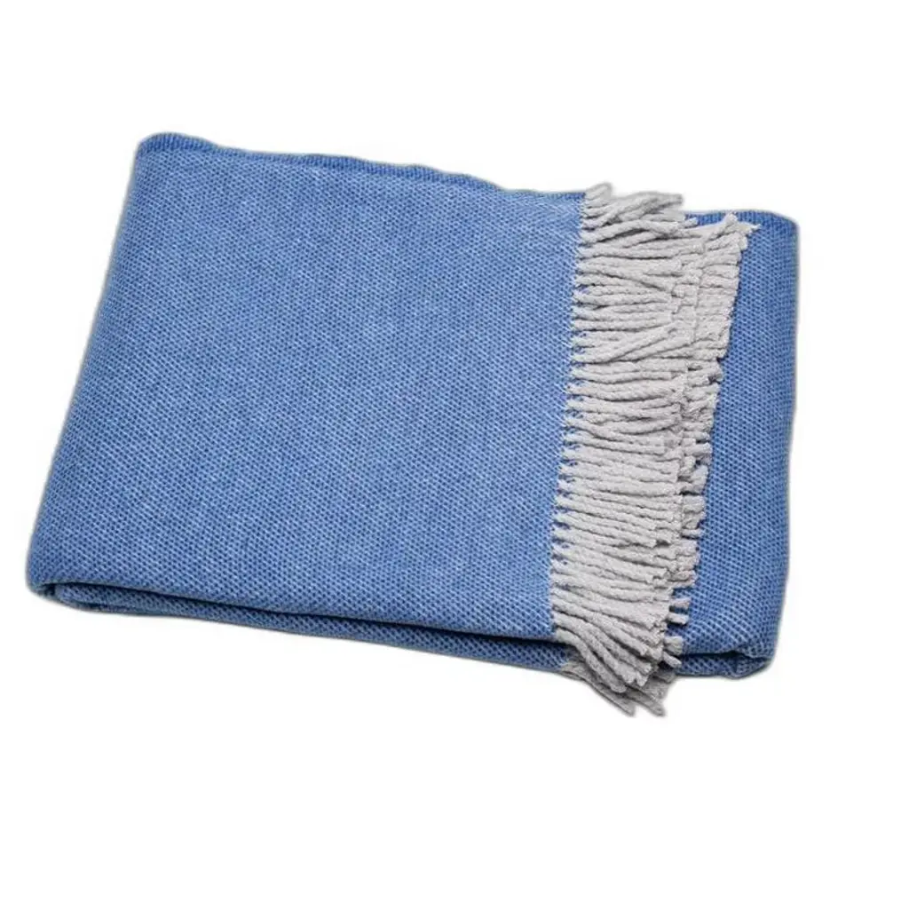 Whether you want to cuddle up on your couch with your favorite cup of tea or add a pop of color to your humble space the Cobalt Blue Mini Dot Fringed Throw Blanket is just for you! The two toned beauty is woven to perfection sporting ultra soft gray fringed edges that contribute to it's entire charm. This throw has been curated with a blend of cotton and acrylic to deliver a luxurious piece of accessory that is soft to touch and looks phenomenal when tossed over neutral or plain colored furniture. Wrap yourself in complete comfort with this plush throw that positively accentuates your entire living space. 0.5" x 70" x 55"