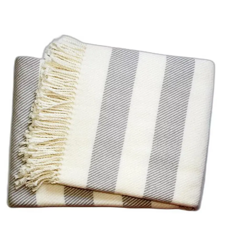 Homeroots Cream And Gray Slanted Stripe Fringed Throw Blanket