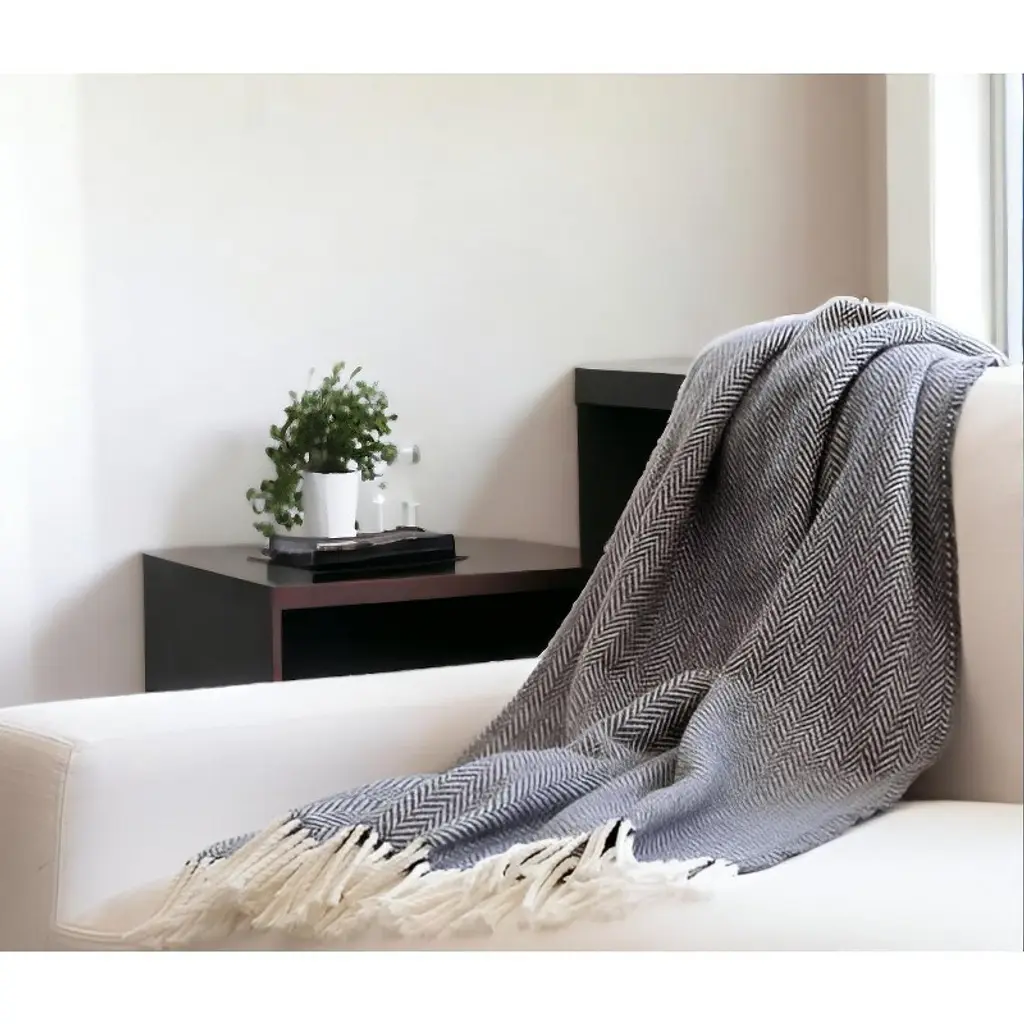 Homeroots Dark Grey And White Dreamy Soft Herringbone Throw Blanket