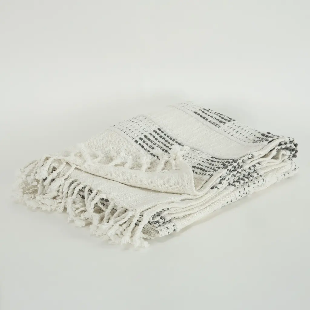 Bring warmth, comfort and style to your space with this green woven 100% cotton throw blanket. Features a woven striped design that offers sumptuous softness and texture that you'll cherish for years to come. Made from 100% cotton this blanket will make a great addition to any room it's added to. Add extra texture to your decor and turn your room into an inviting space. This cozy throw blanket makes the perfect add-on to movie nights and lazy afternoons. 50-inch H x 50-inch W x 0.5-inch D