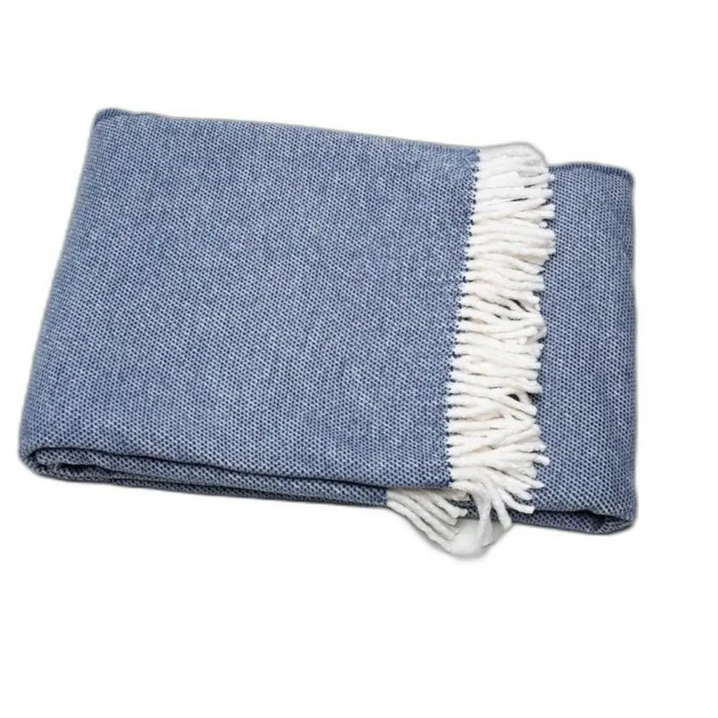 Whether you want to cuddle up on your couch with your favorite cup of tea or add a pop of color to your humble space the Navy Blue Mini Dot Fringed Throw Blanket is just for you! The two toned beauty is woven to perfection sporting ultra soft ivory fringed edges that contribute to it's entire charm. This throw has been curated with a blend of cotton and acrylic to deliver a luxurious piece of accessory that is soft to touch and looks phenomenal when tossed over neutral or plain colored furniture. Wrap yourself in complete comfort with this plush throw that positively accentuates your entire living space. 0.5" x 70" x 55"