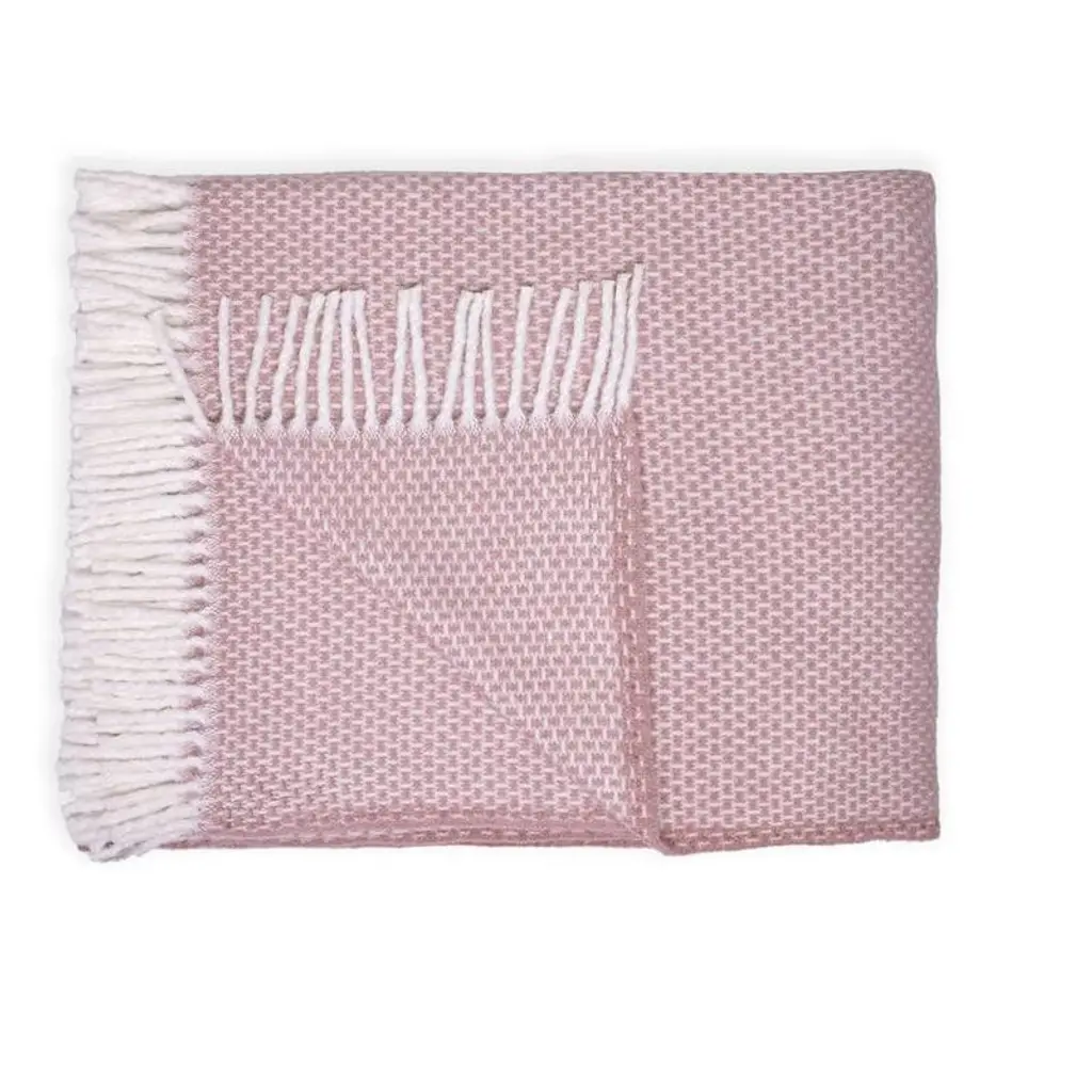 Fill your home with luxury and comfort with the Soft Dusty Rose Links Pattern Throw Blanket. Introduce some texture into your living space with the rice grain pattern and soft fringed ends that complete the look of this plush. Curated to perfection, this fabulous blend of acrylic and cotton exquisitely complements any decor or style. Accentuate your favorite corner with the delicate throw blanket that can be stylishly paired with any sofa, chair or arm rest. Enjoy your cup of coffee and cuddle yourself with this textured beauty that is equipped to deliver a cozy ambience. 0.5" x 70" x 55"
