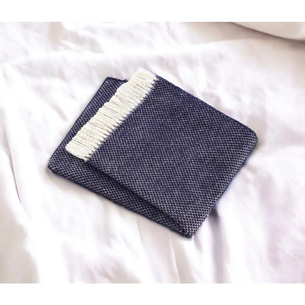 Fill your home with luxury and comfort with the Soft Navy Blue Links Pattern Throw Blanket. Introduce some texture into your living space with the rice grain pattern and soft fringed ends that complete the look of this plush. Curated to perfection, this fabulous blend of acrylic and cotton exquisitely complements any decor or style. Accentuate your favorite corner with the delicate throw blanket that can be stylishly paired with any sofa, chair or arm rest. Enjoy your cup of coffee and cuddle yourself with this textured beauty that is equipped to deliver a cozy ambience. 0.5" x 70" x 55"