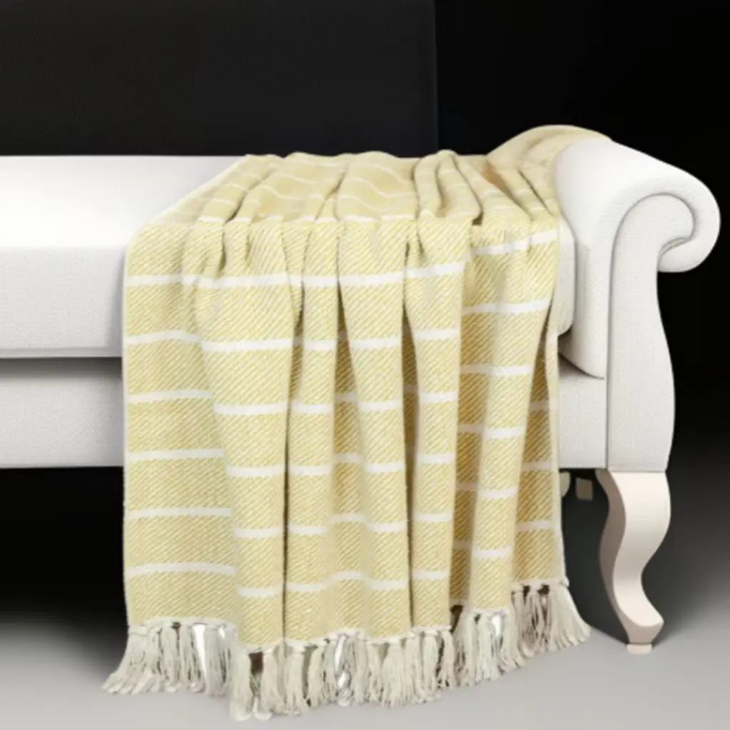 Homeroots Yellow Woven Cotton Striped Throw Blanket
