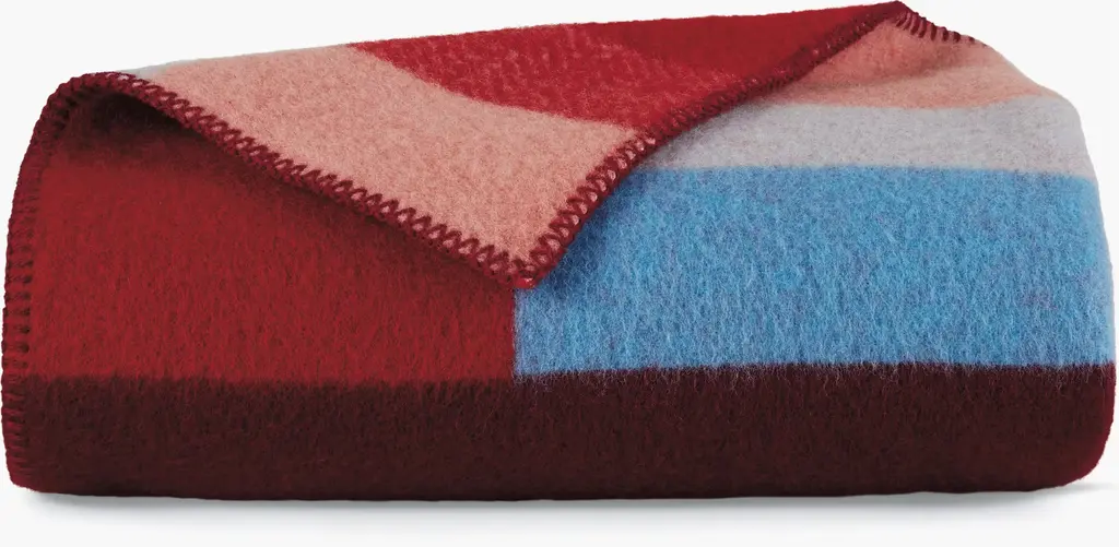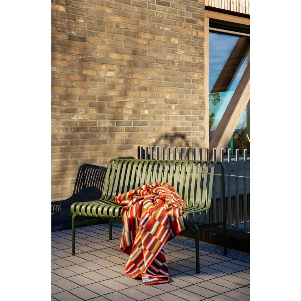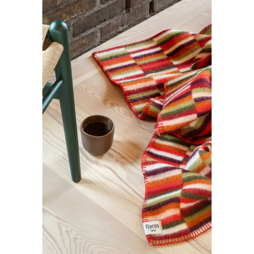 Røros Tweed's Ida throw, designed by Anderssen & Voll, features a colorful, checkered pattern inspired by patchwork and handmade tapestries. The designers, Torbjørn Anderssen and Espen Voll, created the pattern by making a full-scale model with pieces of colored paper – so instead of digital design or drawing, it was designed literally by hand. To honor the design process, traces of the human hand, like small imperfections and irregularities, were preserved in the final product. Røros Tweed's high-quality home textiles are made in Norway from 100% lambswool, shorn from sheep living free in the mountains.
