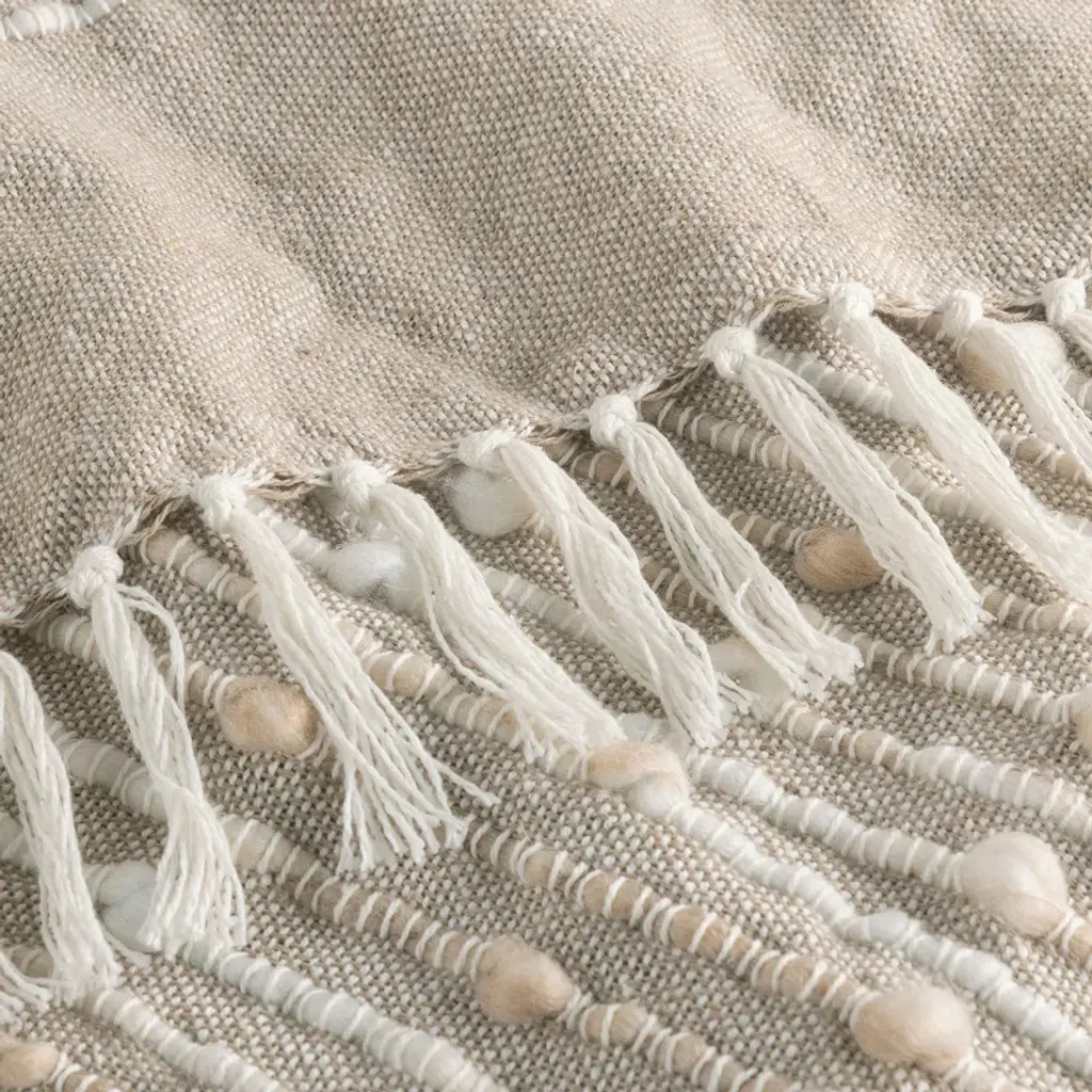 Bring luxury and comfort to everyday living with the Damara Throw by Indigo Road, a brand founded by renowned designer, HGTV star, and real estate broker Egypt Sherrod. Guided by her belief that your home should feel good from the inside out, this luxurious cotton blend throw with subtle space dyed stripes and chunky tassel trim is thick, plush, and perfect for snuggling. Dry clean only. Dry Clean Only.