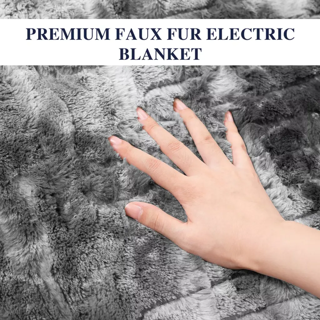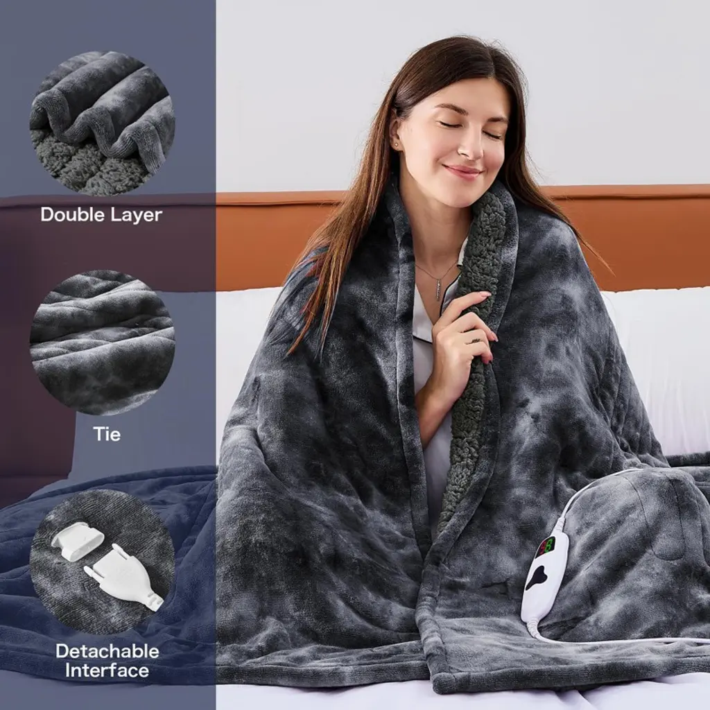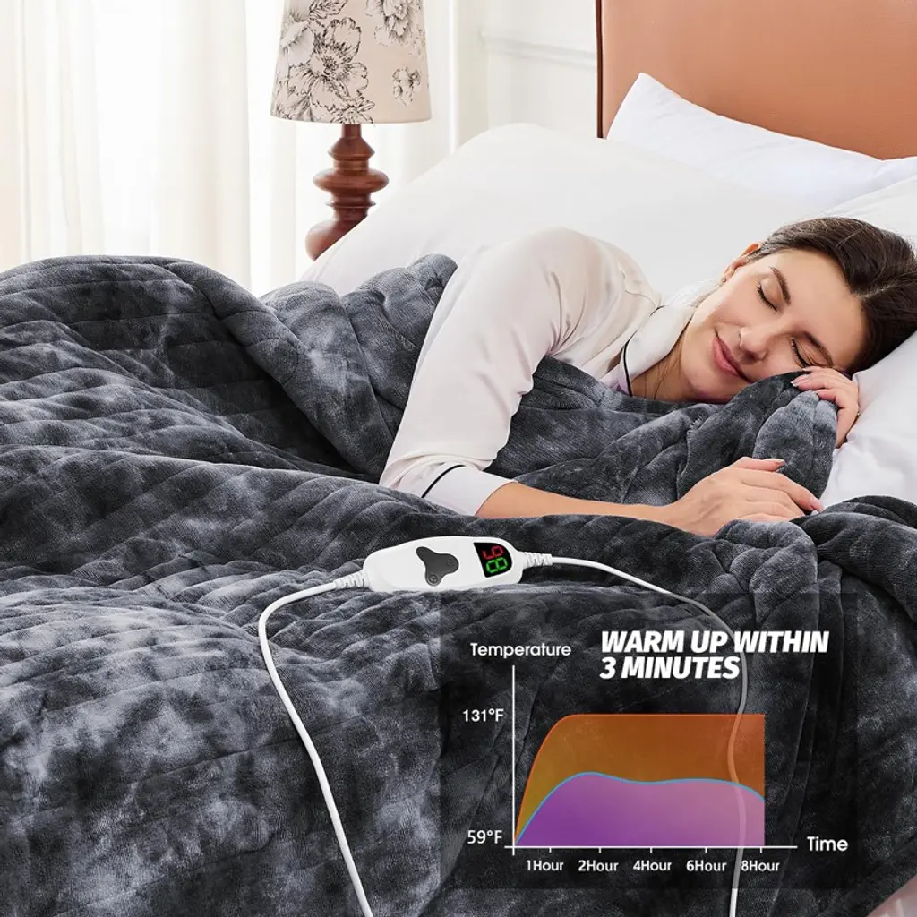 Inhand Heated Blanket Electric Throw - 50"x60" Gray Tie-dyed Flannel Heating Blanket Throw Auto-off 10 Heat Level Over-heat Protection