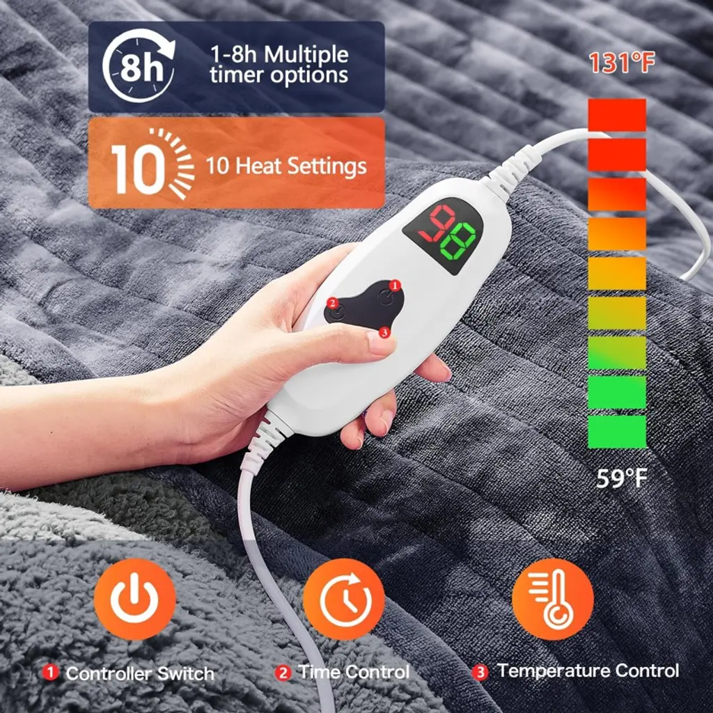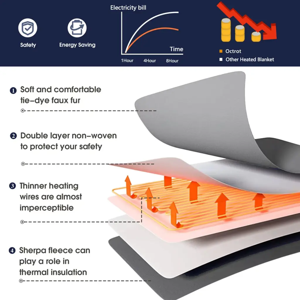 Discover the ultimate comfort and warmth with our heated electric blanket. Say goodbye to the cold and enjoy cozy winter moments while reading, working, napping, or watching TV. With its soft tie-dyed flannel fabric, this blanket delivers exceptional warmth and comfort. Our electric blanket offers multiple gear adjustments, including five auto-shutdown options and ten temperature settings ranging from 59°F to 131°F. It heats up quickly, reaching maximum warmth in just five minutes. Easy to maintain and wash, this blanket promises safety, durability, and energy efficiency, significantly reducing your heating costs. Experience warmth and savings like never before!