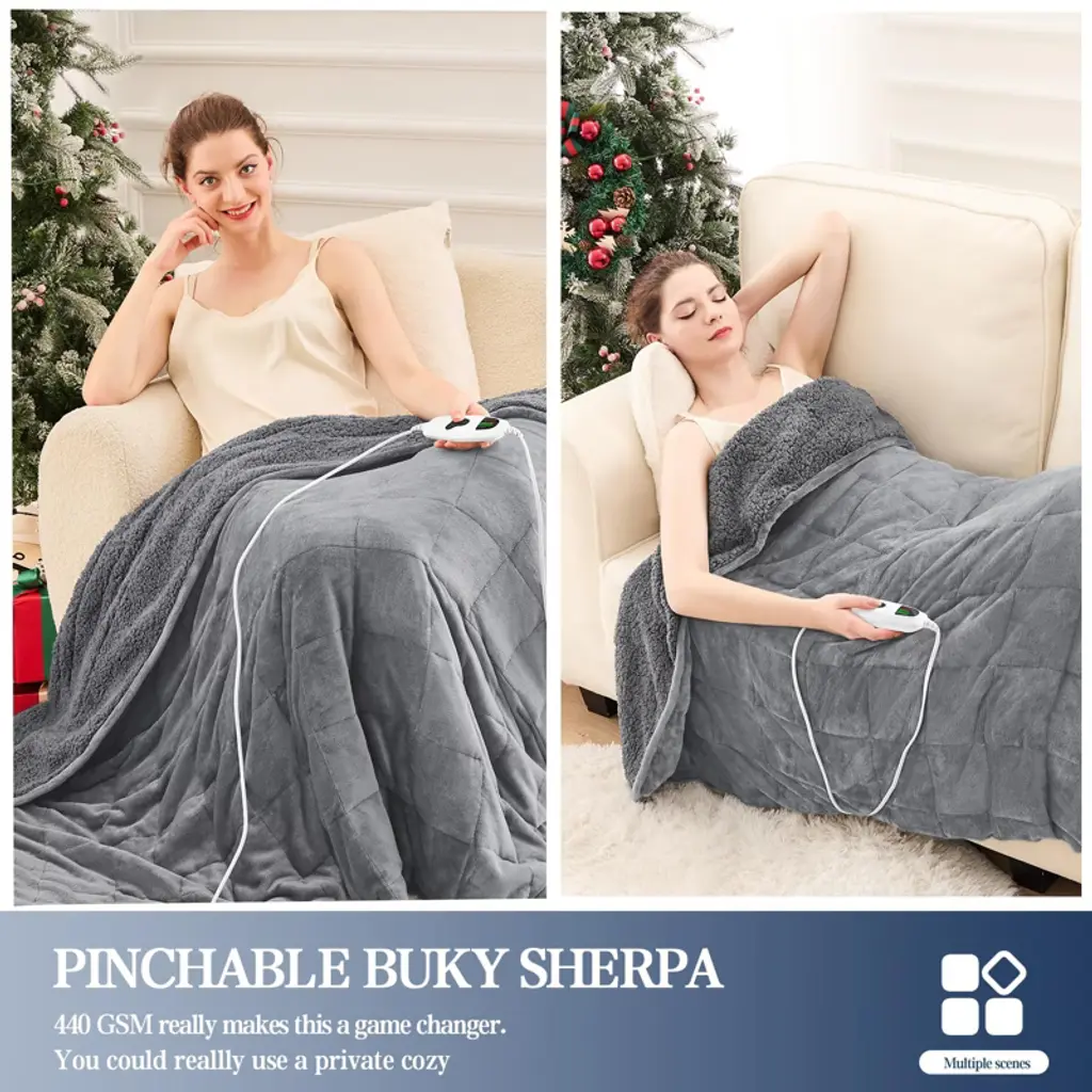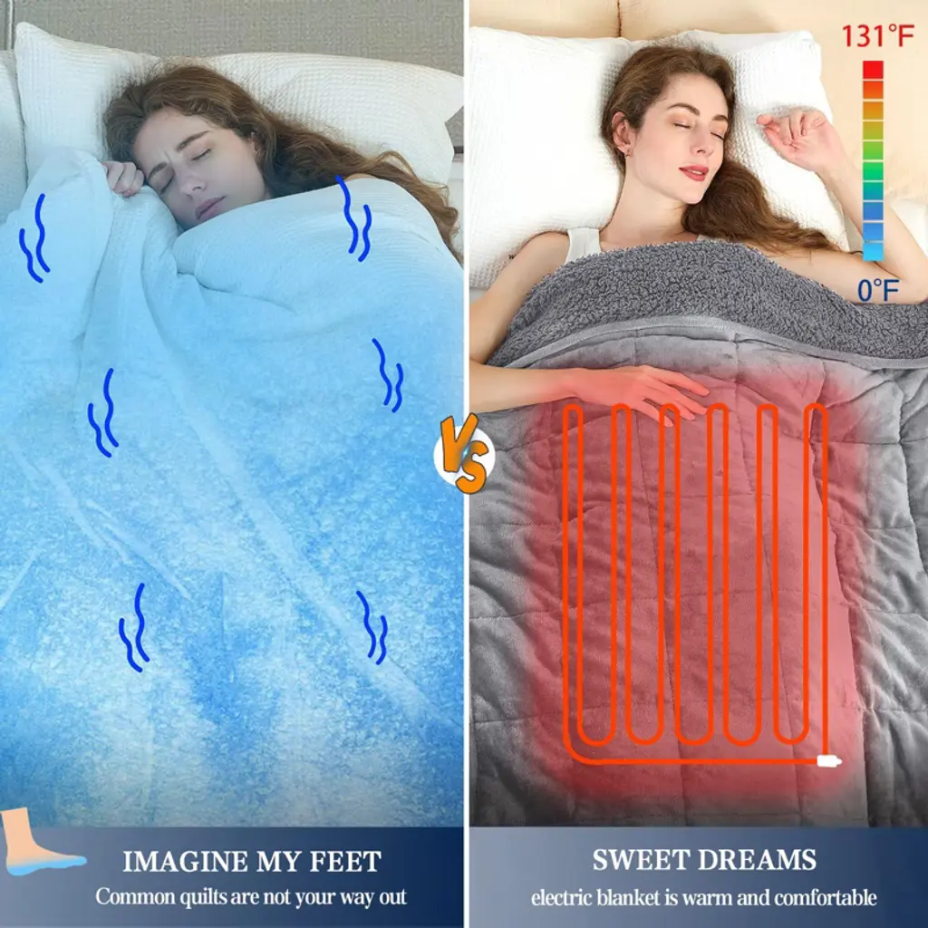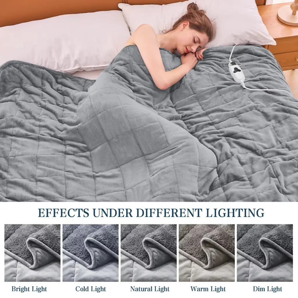 Discover the ultimate cold-resistant weapon with our weighted heating blankets! Crafted from high-quality fuzzy flannel material, these blankets are skin-friendly, soft, and comfortable. Weighing 13 pounds, they're perfect for adults between 130-180 pounds, ensuring even weight distribution with micro glass beads. Featuring 10-level temperature control (59°F-131°F) and adjustable auto-off times (1h-8h), they keep you warm and safe with overheat protection. Stay cozy and secure with our premium heated blankets!