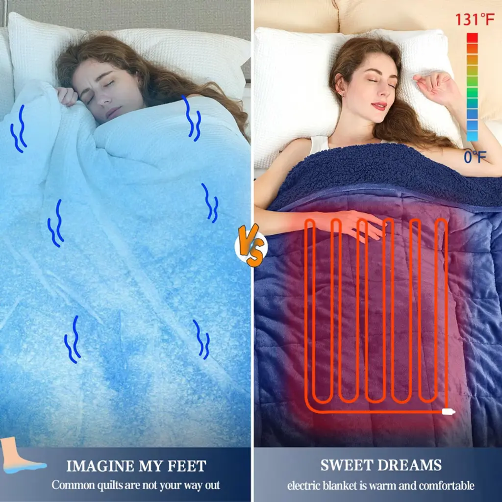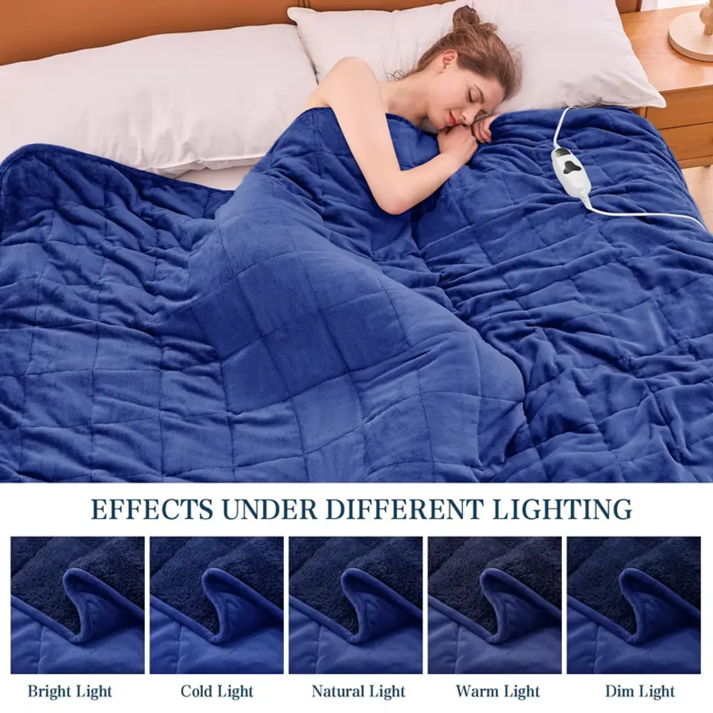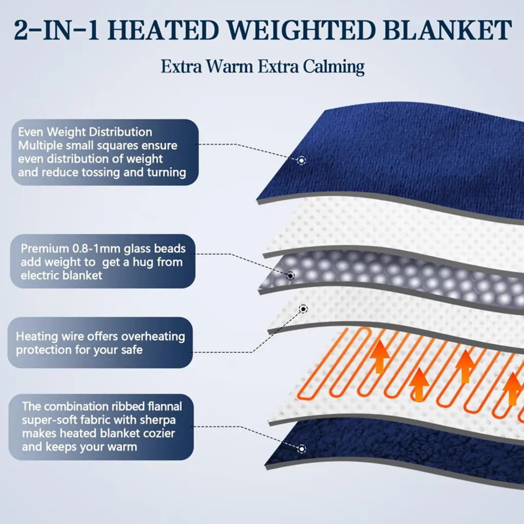Discover the ultimate cold-resistant weapon with our weighted heating blankets! Crafted from high-quality fuzzy flannel material, these blankets are skin-friendly, soft, and comfortable. Weighing 13 pounds, they're perfect for adults between 130-180 pounds, ensuring even weight distribution with micro glass beads. Featuring 10-level temperature control (59°F-131°F) and adjustable auto-off times (1h-8h), they keep you warm and safe with overheat protection. Stay cozy and secure with our premium heated blankets!