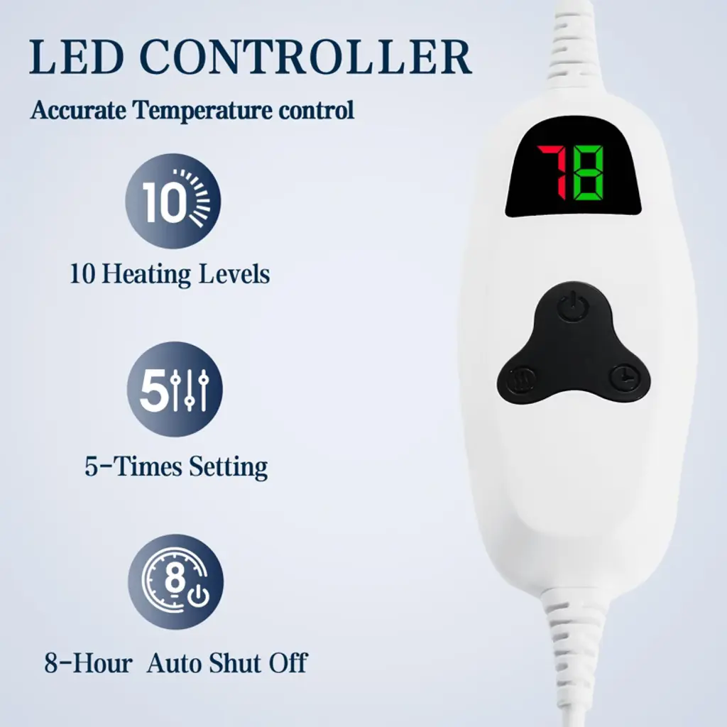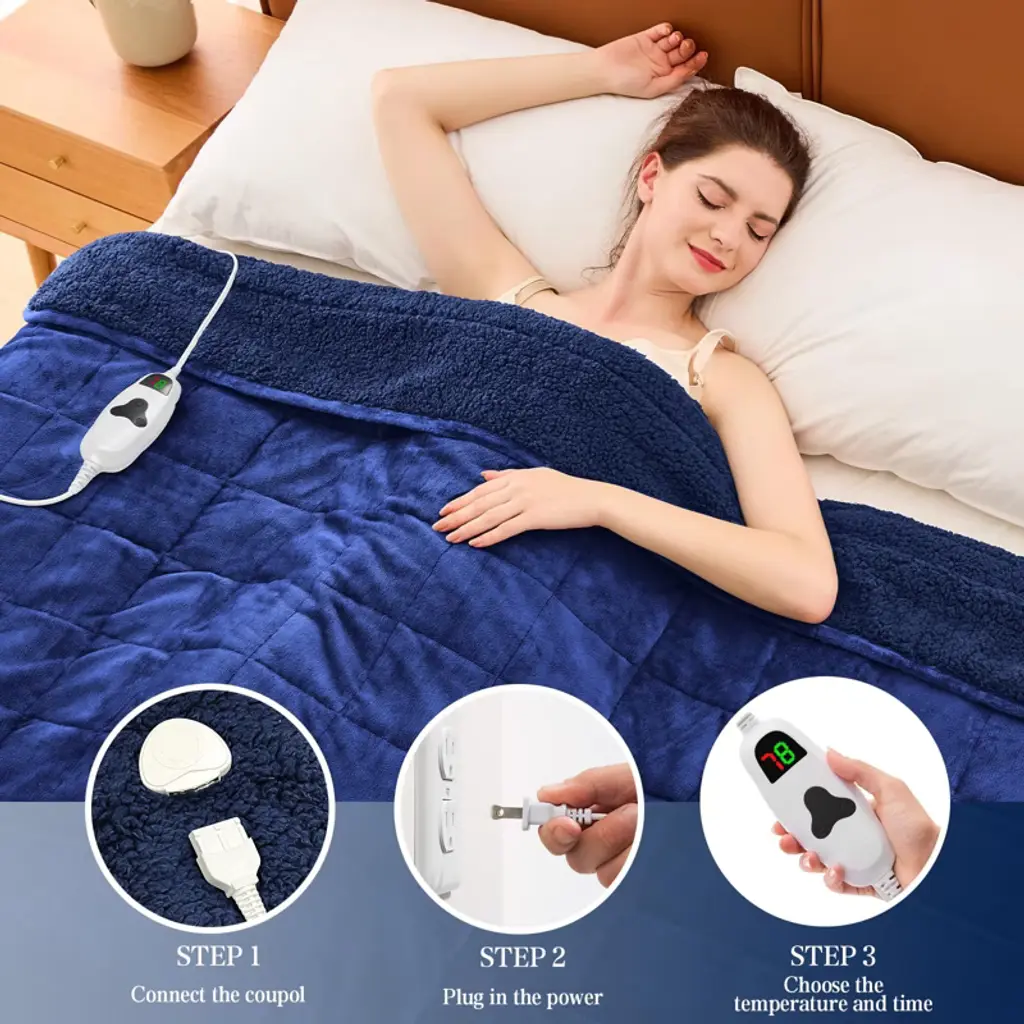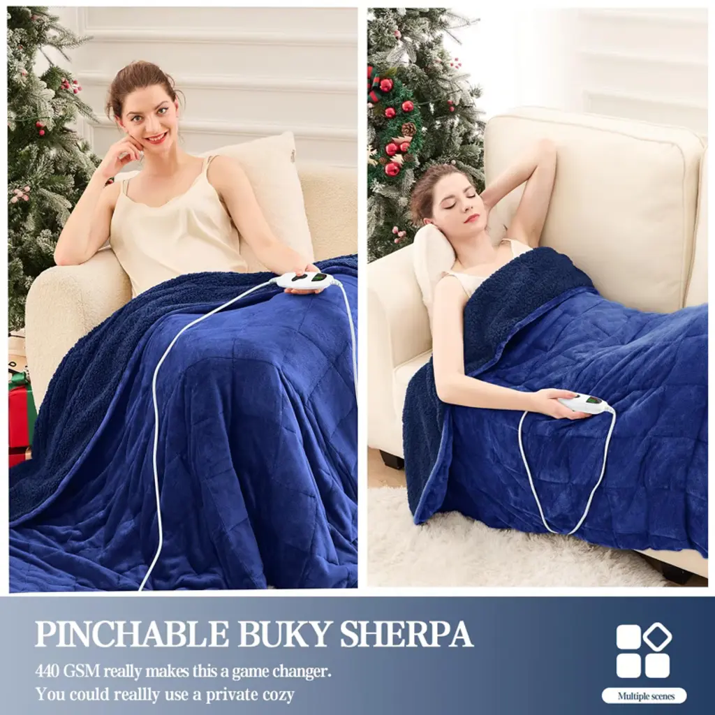 Discover the ultimate cold-resistant weapon with our weighted heating blankets! Crafted from high-quality fuzzy flannel material, these blankets are skin-friendly, soft, and comfortable. Weighing 13 pounds, they're perfect for adults between 130-180 pounds, ensuring even weight distribution with micro glass beads. Featuring 10-level temperature control (59°F-131°F) and adjustable auto-off times (1h-8h), they keep you warm and safe with overheat protection. Stay cozy and secure with our premium heated blankets!
