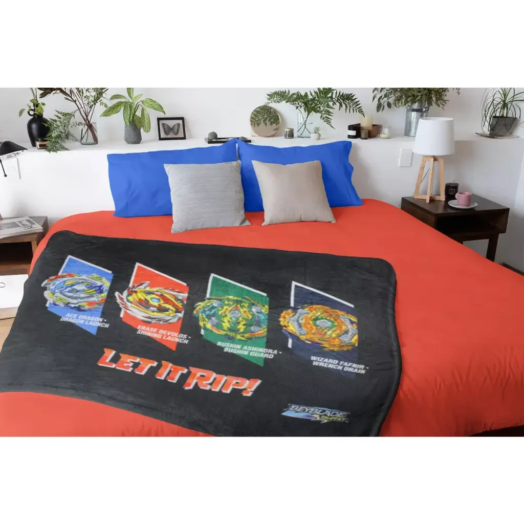 Intimo Beyblade Burst Spinner Tops Let It Rip! Plush Fleece Throw Blanket Black