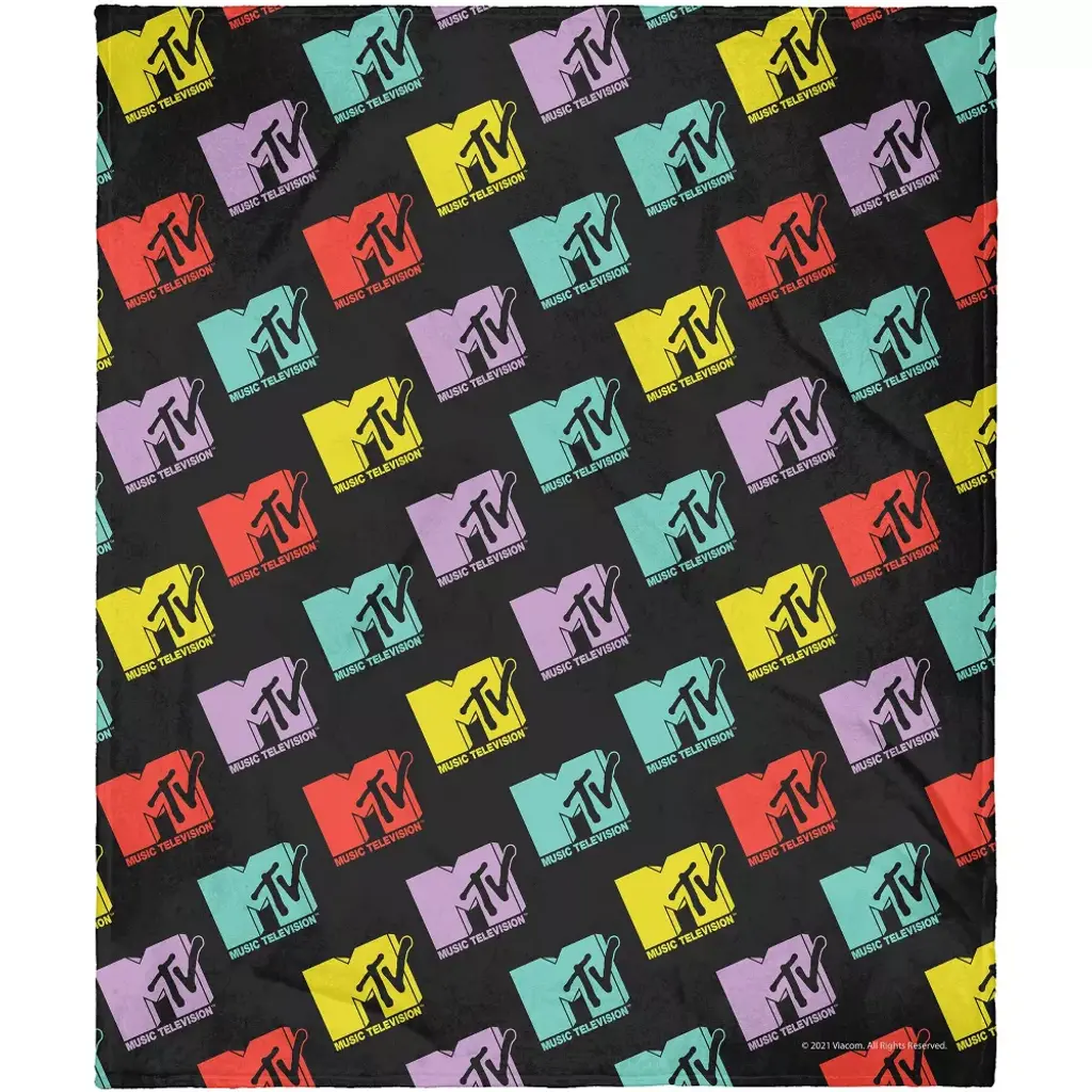 Intimo Mtv Music Television Retro Toss 80's Logo Plush Fleece Throw Blanket Wall Scroll Multicoloured
