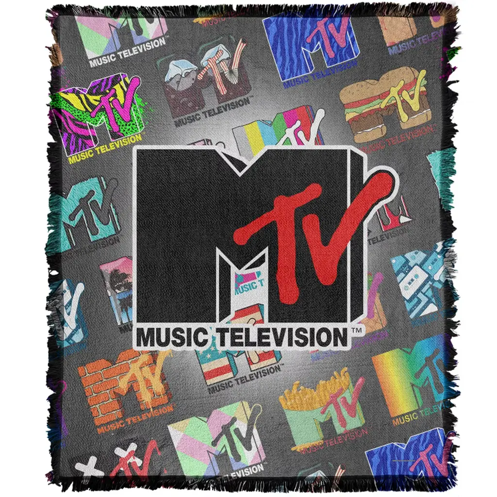 I Want My MTV! Music Television was the first channel you could tune into to watch different music videos 24/7. Debuting with the famous song "Video Killed the Radio Star" by the Buggles, it became the most successful music television service to ever air! With the classic looking logo and infamous pop culture references like Moon Man, MTV became something kids of the 80's couldn't live without. This silk touch blanket features the MTV logo straight from the '80s: a large box M in multiple color variations with the words 'Music Television' below. The plush throw blanket is made of an extra-soft and comfy 100% polyester fabric. This blanket measures approximately 50"x60". These are the best!