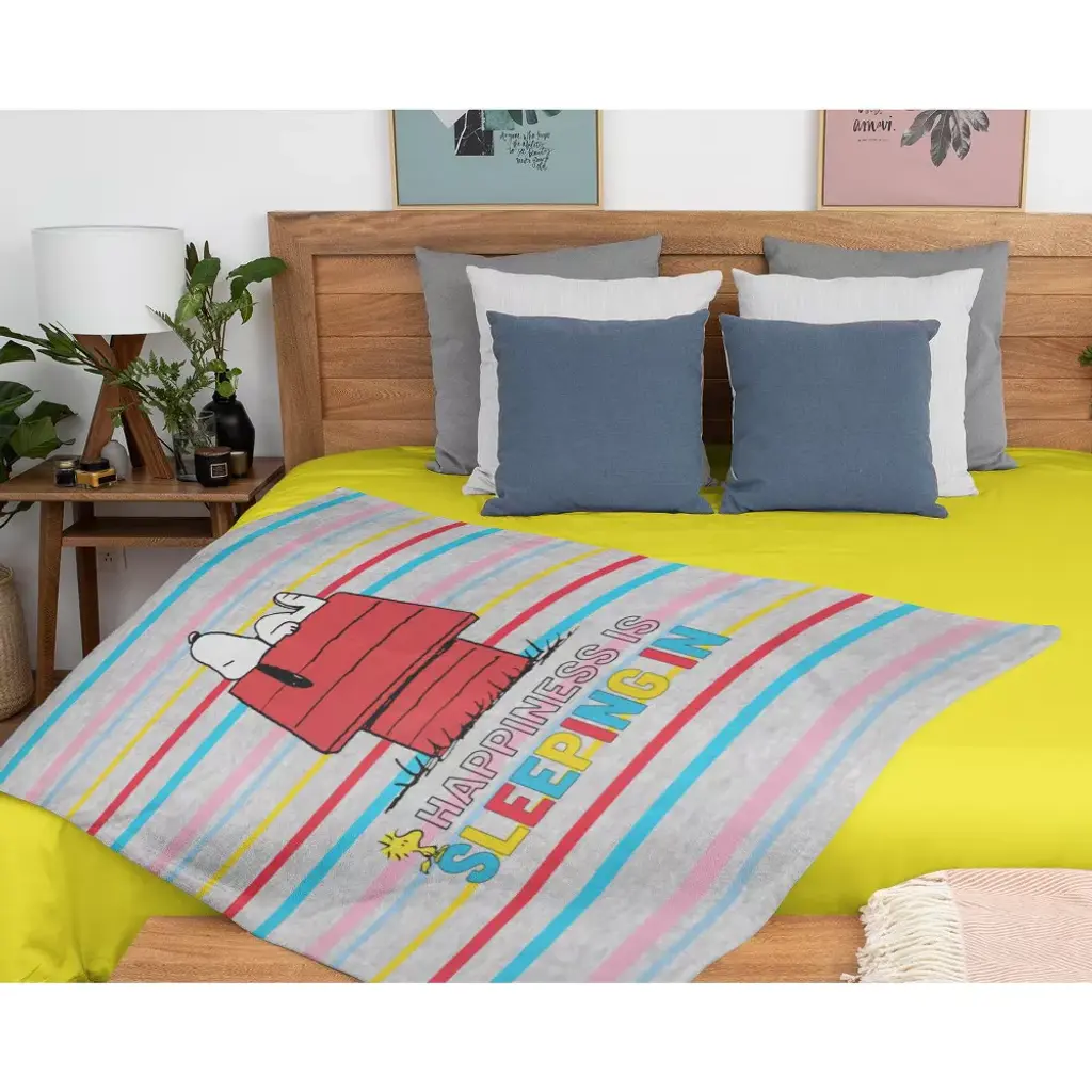 Intimo Peanuts Snoopy And Woodstock Happiness Is Sleeping In Silk Touch Throw Blanket Multicoloured