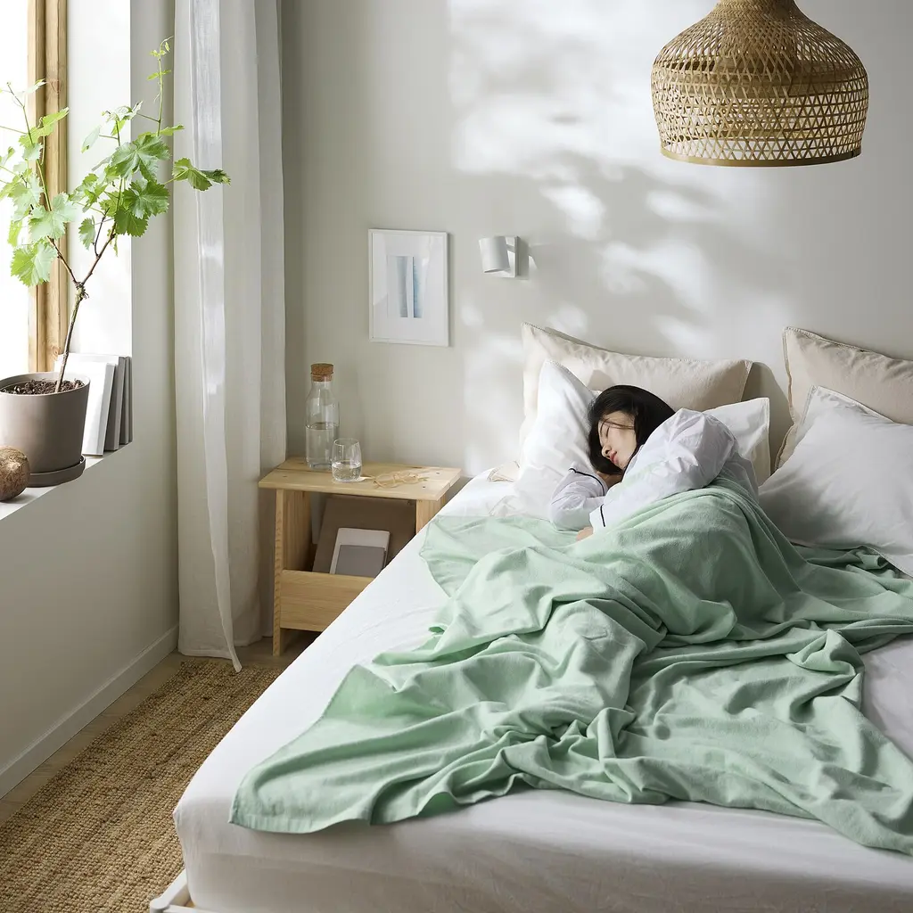 JÄTTETUJA Blanket - turquoise 55x75 ". A thin, lightweight blanket that can be used instead of a duvet during warm months. The materials absorb body moisture giving you a comfy and dry sleeping environment. A good choice if you often feel too warm while sleeping. Smooth and soft against the skin.