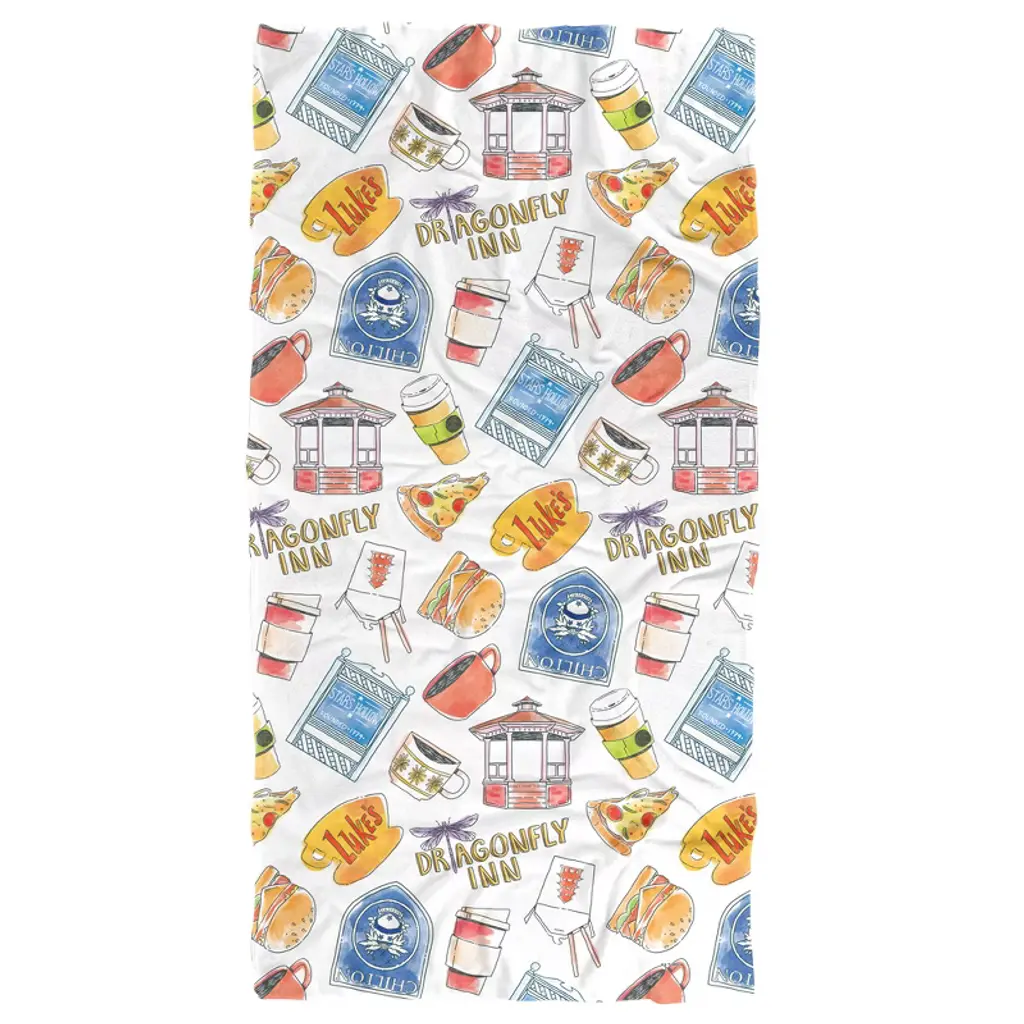 Bring a little Stars Hallow charm into your home with this Gilmore Girls 50x60 Inch Feather Knit Throw Blanket featuring popular elements from the show. Made from soft and cozy feather knit fabric, this blanket is perfect for kids and adults who adore Rory and Lorelei. The delightful design showcases beloved Stars Hallow favorites like Luke's Diner, making this a fun and stylish addition to any bedroom, playroom, or living space. This 50x60 inch blanket is just the right size for snuggling up on the couch, staying warm in bed, or taking with you on trips. It's lightweight yet warm, offering comfort while being easy to carry around. The best part? Its machine washable, making it a breeze to keep clean and soft for everyday use. Whether youre gifting it to a devoted Gilmore Girls fan or keeping it for yourself, this throw blanket brings a touch of Stars Hallow magic to any room. Its the perfect way to add both comfort and a splash of the Gilmore's signature style to your home