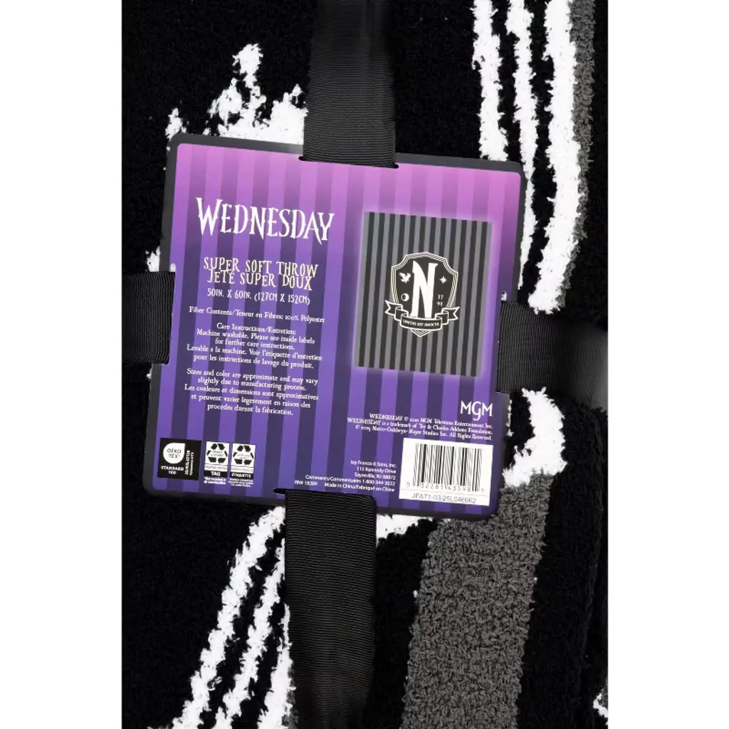 Cozy up and elevate your space with Wednesday Feather Knit Plush Throw Blanket! This ultra-soft throw is crafted from high-quality 100% microfiber, making it the perfect blend of comfort, warmth, and style. Measuring a generous 50 x 60, this plush blanket is ideal for year-round usewhether youre curling up in bed, lounging on the couch, or taking your favorite throw blanket along on road trips. This versatile blanket is more than just a cozy companion; its a stylish statement piece. Layer your throw over bedding for an extra touch of warmth or drape it over a chair or sofa to add a pop of color and a hint gothic charm to your room dcor. Designed with spooky fans in mind, this soft and cozy blanket brings both comfort and character to any room. Whether youre binge-watching your favorite series, reading a book, or simply relaxing, this throw will quickly become your go-to for all things comfy. Plus, this plush blanket is easy to care forjust toss it in the washer for hassle-free cleaning. A must-have for Wednesday fans, this fuzzy blanket makes a thoughtful gift or a treat for yourself!