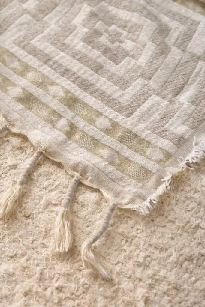 Inspired by a vintage African textile, this seriously soft throw blanket from Justina Blakeney features a modern, geometric key-like pattern printed allover. Finished with fringe tassels lining the trims. **Features** \- Jungalow By Justina Blakeney Hypnotic Throw Blanket \- Finished with geometric motifs allover \- Fringe tassel trims \- Add to your bed or drape it over the sofa, the light-but-warm feel is cozy anywhere \- Perfect for gifting **Content + Care** \- 62% Polyester, 38% acrylic \- Hand wash \- Imported **Size** \- Dimensions: 60"l x 50"w