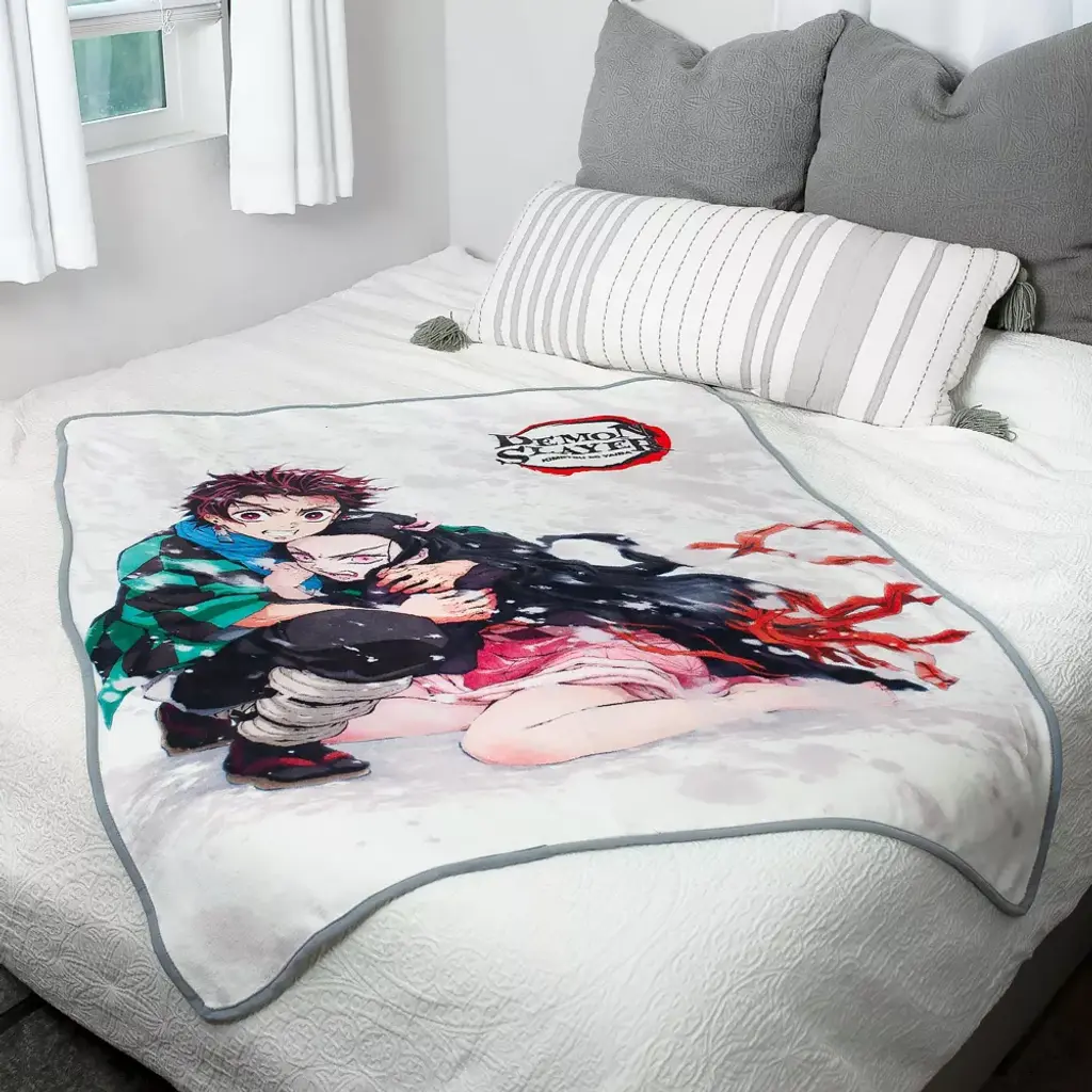 Just Funky Demon Slayer Tanjiro & Nezuko Fleece Throw Blanket | 45 X 60 Inches