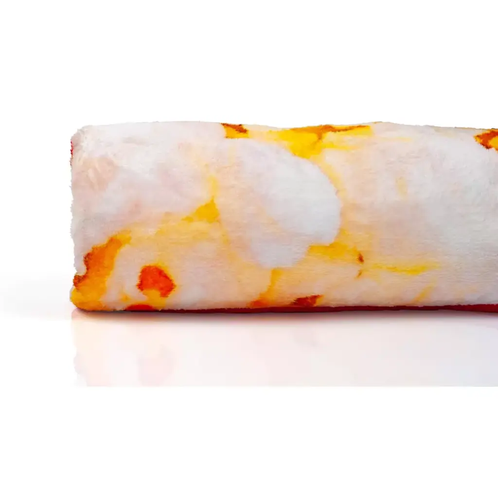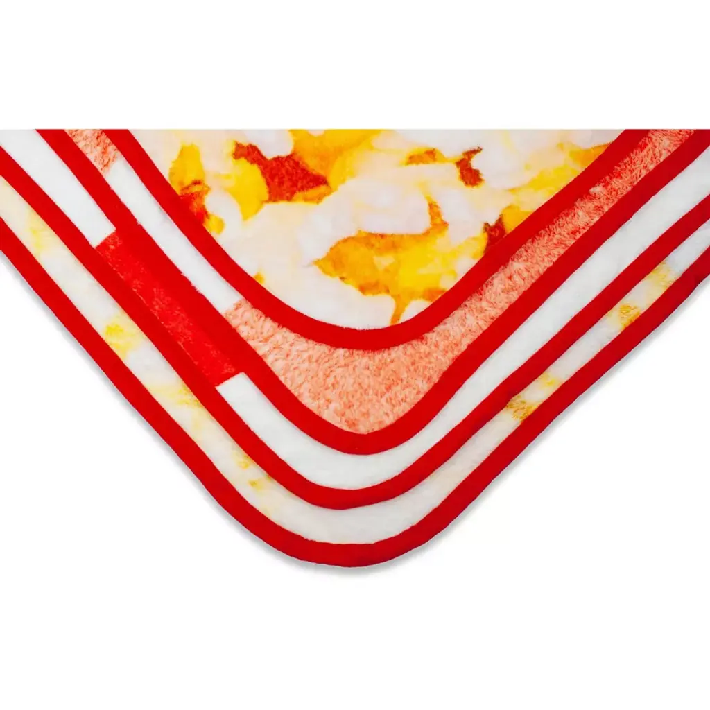 Calling all snack food lovers! Show off your love of popcorn with this warm and cozy fleece throw blanket! This fun blanket features vibrant artwork of a yummy box of popcorn! It's soft to the touch, made up of 100% polyester material and measures a roomy 45 x 60 inches. It makes a perfect addition to any room in your house. Lastly, it's also easy to clean, machine wash with cold water is highly recommended.