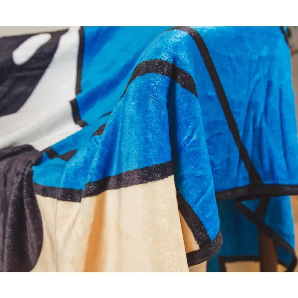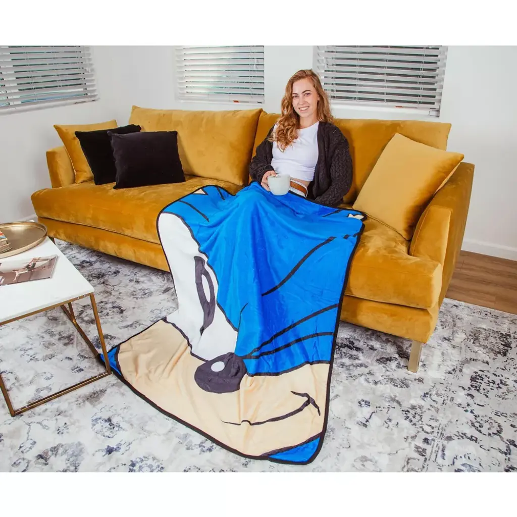 Show off your love of Sonic the Hedgehog with this warm and cozy throw blanket! Featuring the face of Sonic, this fun throw blanket is soft to the touch, made up of 100% polyester material and measures a roomy 59 inches in diameter. Lastly, it's also easy to clean, machine wash with cold water is highly recommended. Officially licensed. Produced by Just Funky.