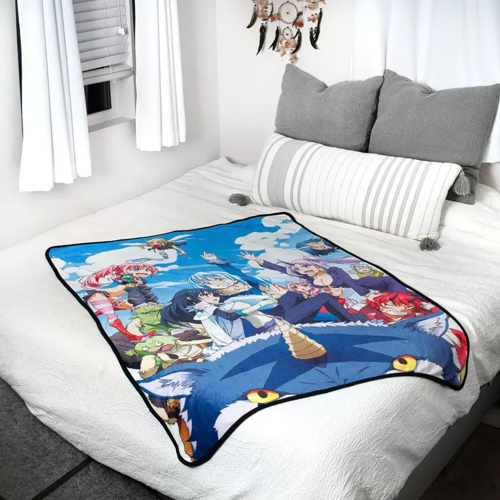 Show off your love of That Time I Got Reincarnated As A Slime with this warm and cozy throw blanket! Featuring characters from the popular anime, this fun throw blanket is soft to the touch, made up of 100% polyester material and measures a roomy 59 inches in diameter. Lastly, it's also easy to clean, machine wash with cold water is highly recommended. Officially licensed. Produced by Just Funky.