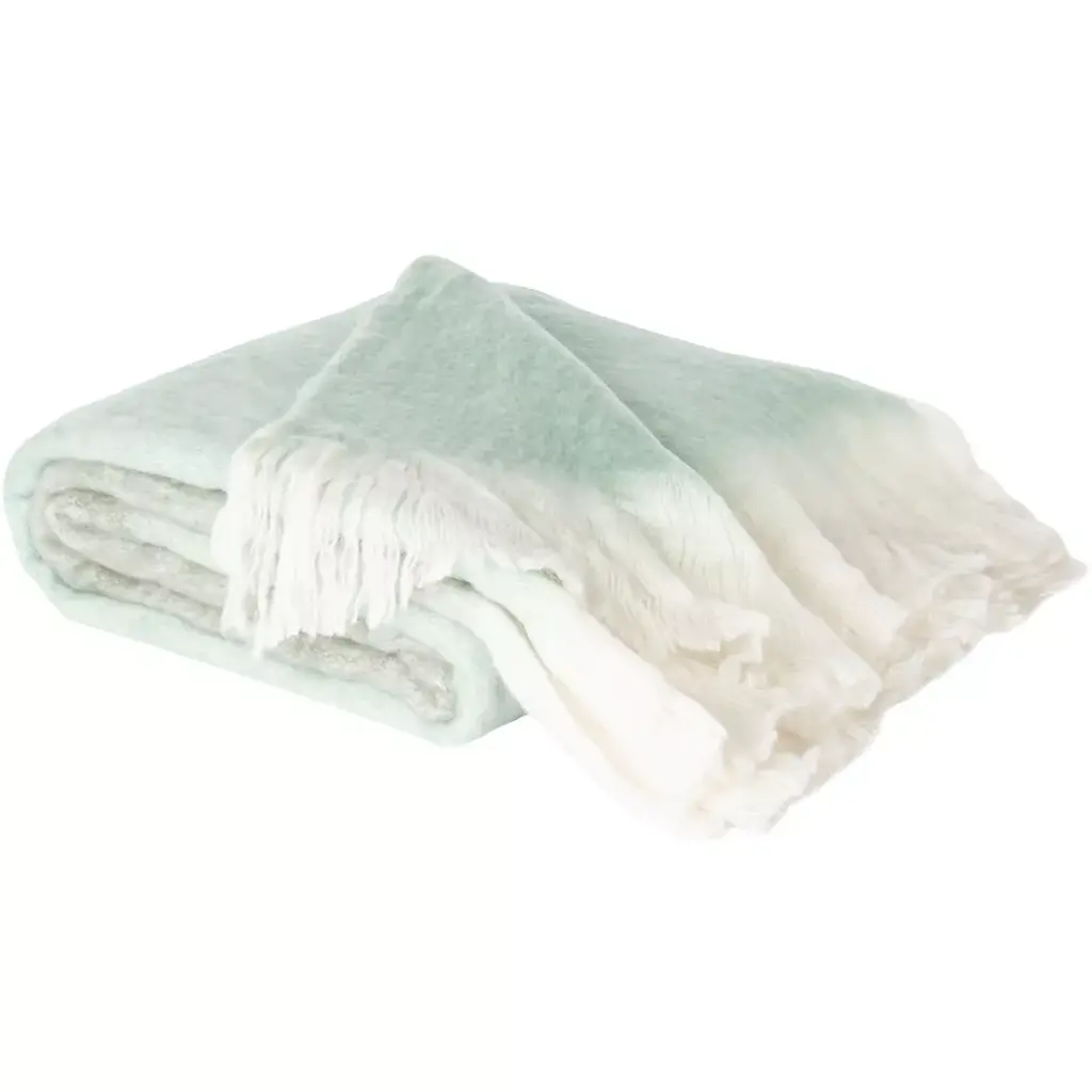For a fusion of warm tones and soft, fringed texture, the Kartia Throw is delivers both and more. Colored in aqua on one end and soft grey on the other, the flowing fringes and comforting feel of Kartia add a comforting element and inviting hues to room decor. Care Instructions: Dry clean only