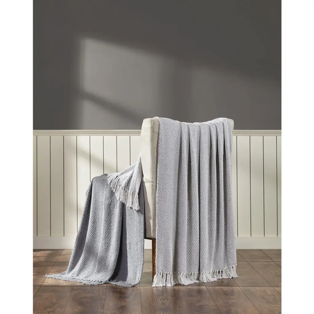 Kate Aurora Chic Living 2 Pack Gray Yarn Dyed Woven & Fringed Coordinating Ultra Soft Accent Throw Blanket Set - 50 In. W X 60 In. L