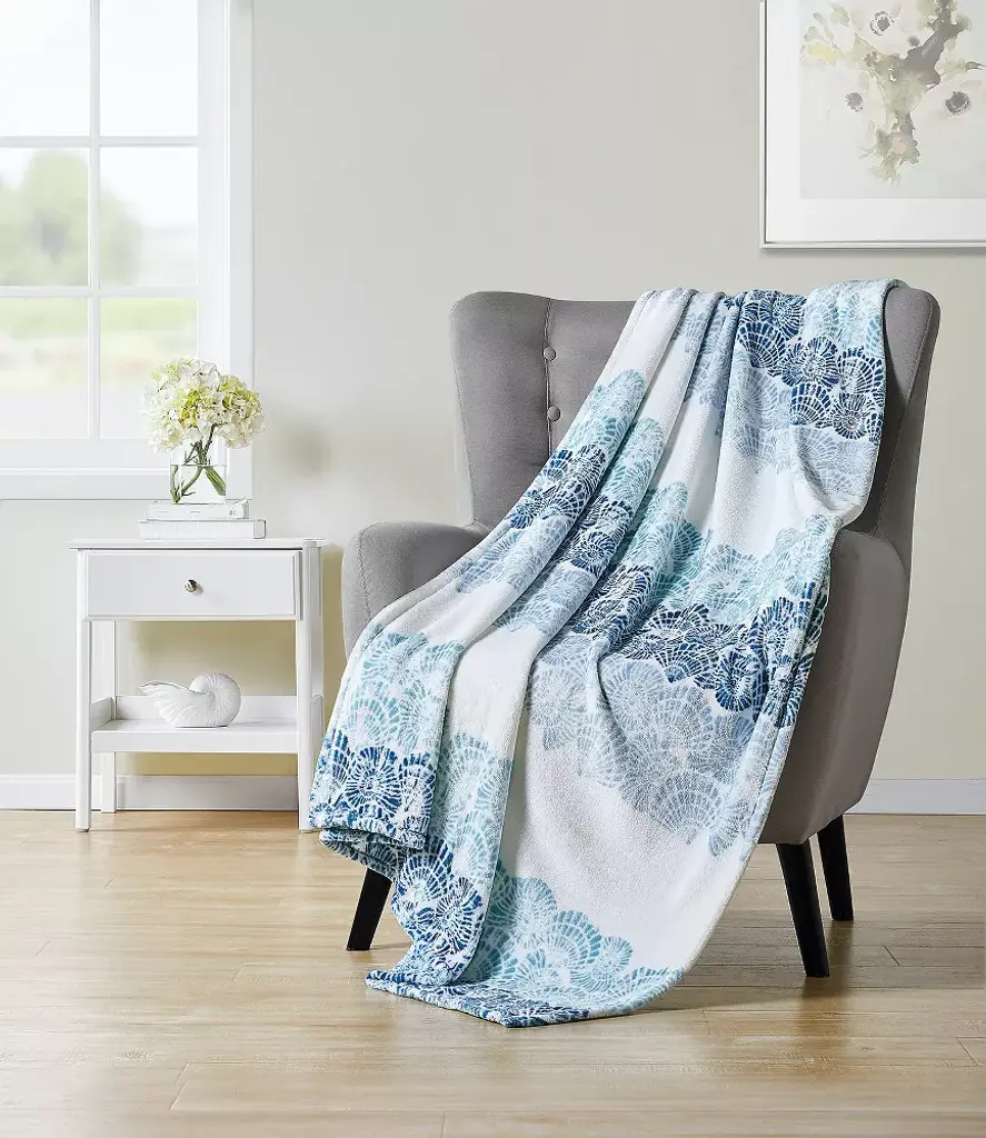 Kate Aurora Coastal Living Blue Ombre Seashells Ultra Plush Accent Throw Blanket - 50 in. W x 70 in.