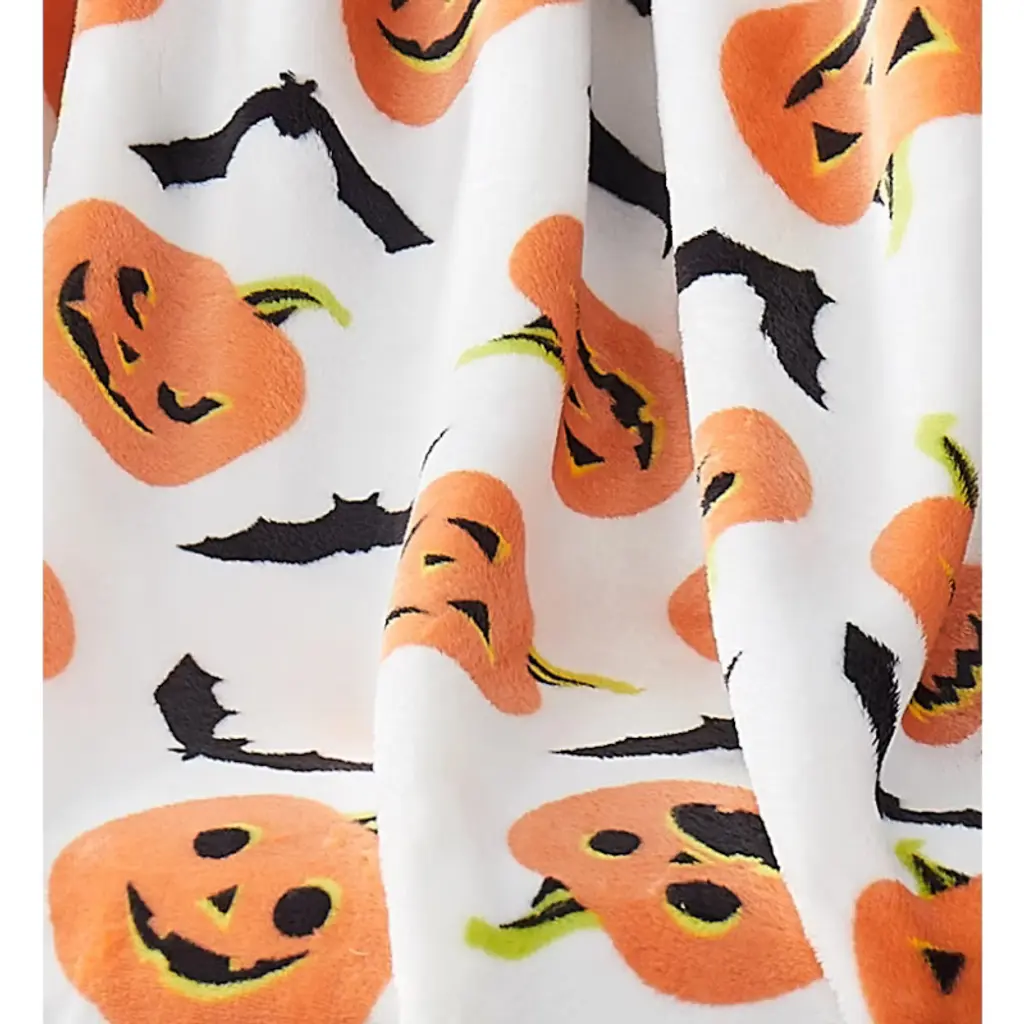 Add a festive touch to your home with the Kate Aurora Halloween throw blanket. Featuring a playful pumpkin and bat design in rustic orange and white, this ultra-soft and plush blanket is perfect for snuggling up on chilly autumn evenings. Made from durable, high-quality polyester, it's a cozy and stylish addition to your Halloween decor. Machine washable for easy care.