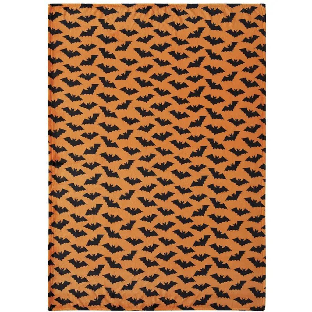 Kate Aurora Halloween Spooky Bats Orange Throw Blanket