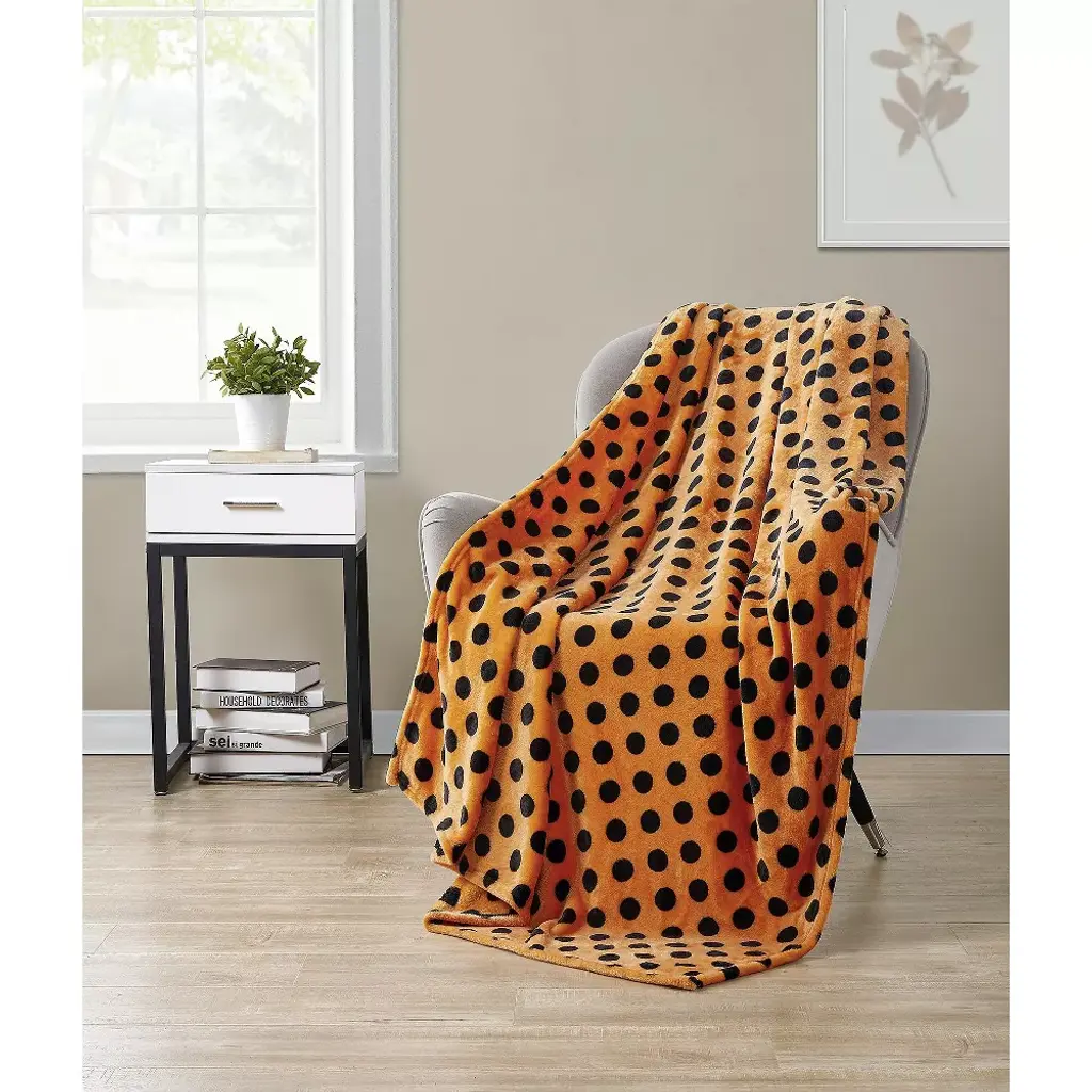 Kate Aurora Living Halloween Spooky Polka Dots Orange & Black Ultra Soft & Plush Throw Blankets