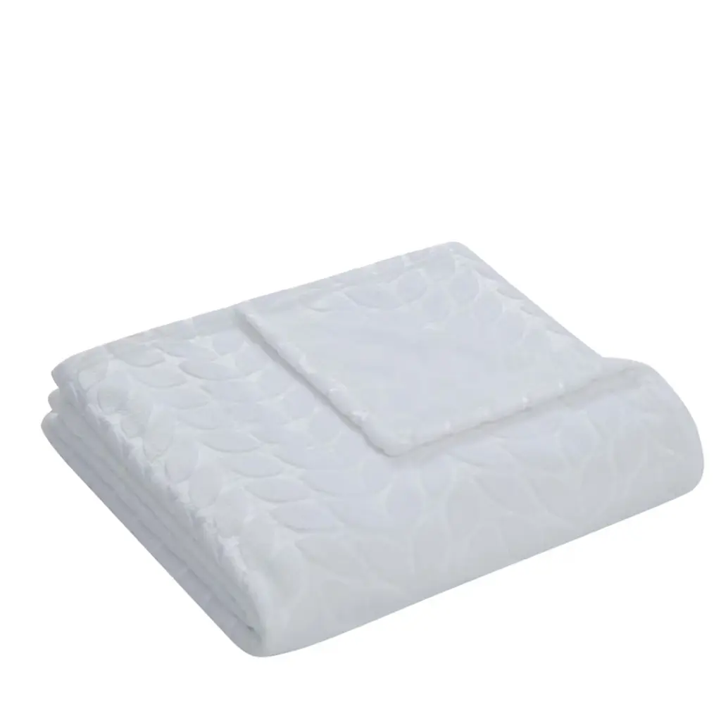 Kate Aurora Pastel Chic Embossed Leaves Ultra Plush Accent Throw Blanket - 50 In. W X 60 In. L - White