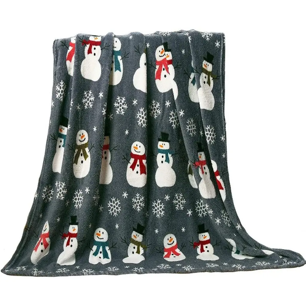 Kate Aurora Ultra Soft & Cozy Christmas Gray Snowman Plush Accent Throw Blanket Cover - 50 In. W X 60 In. L